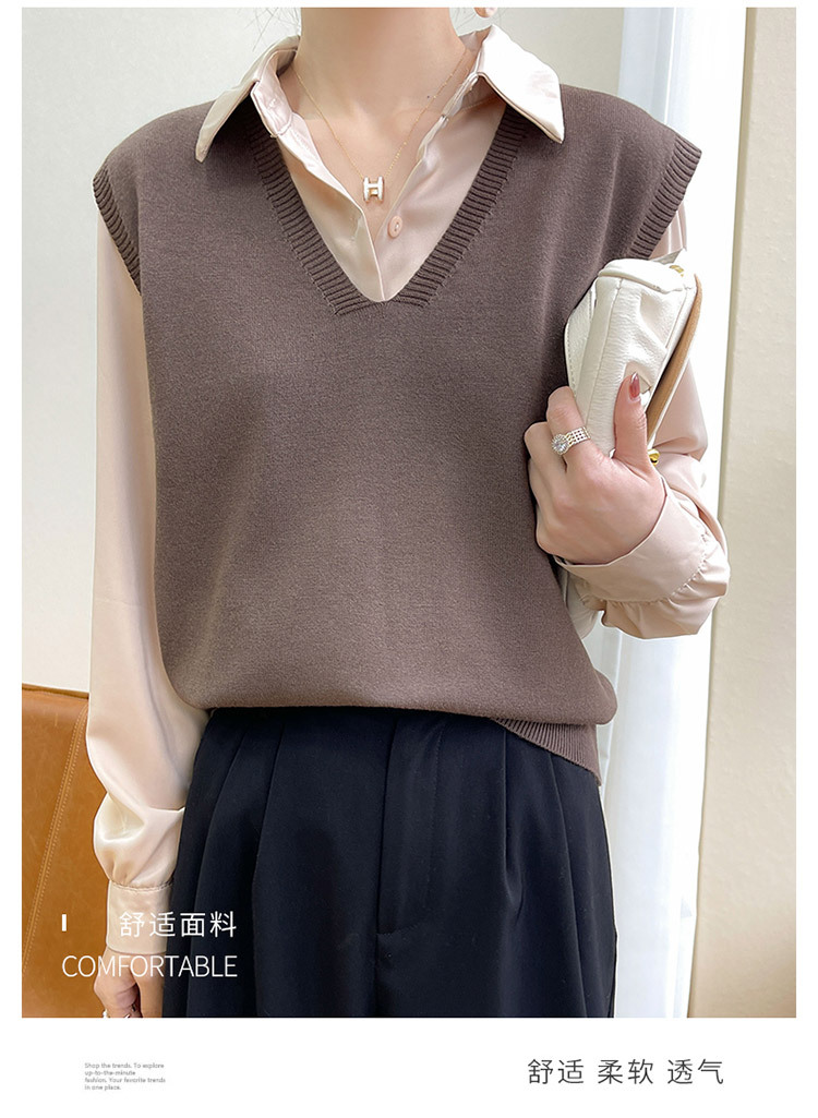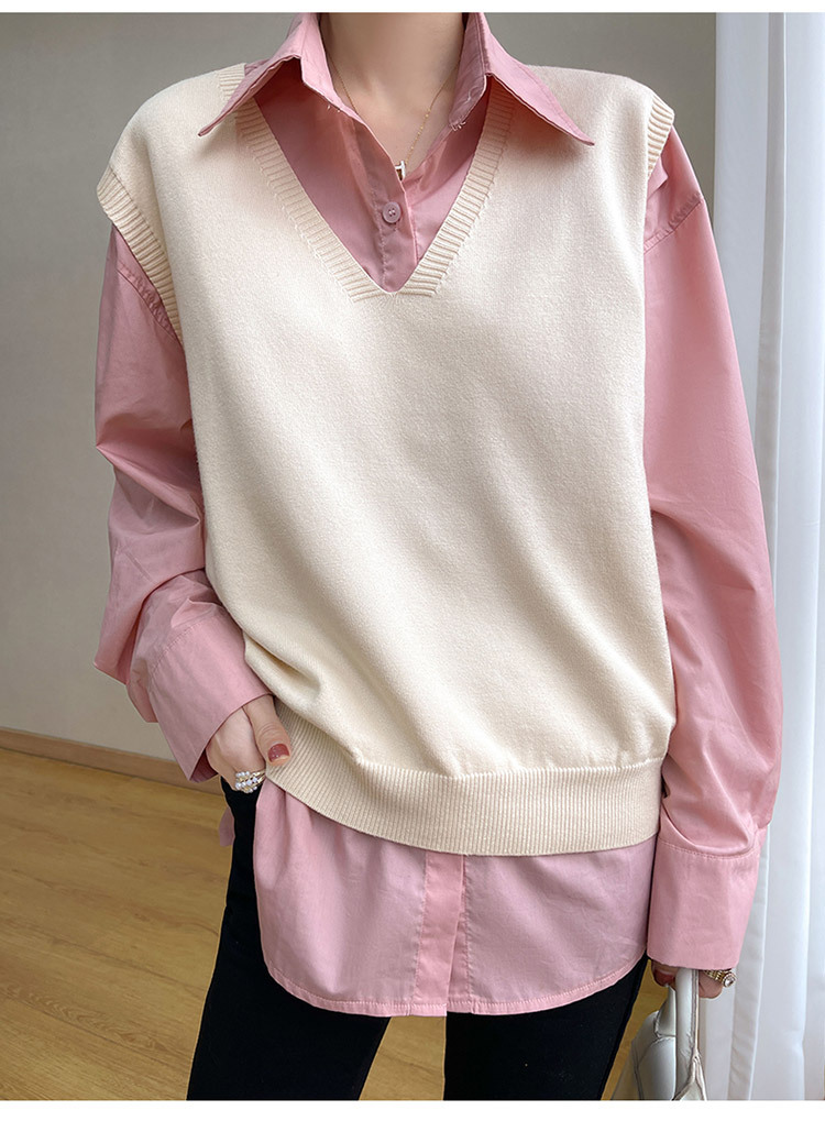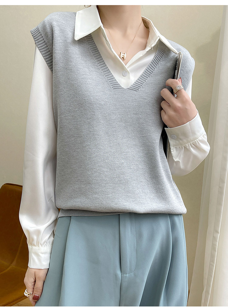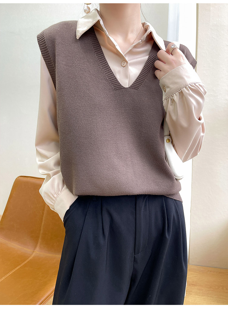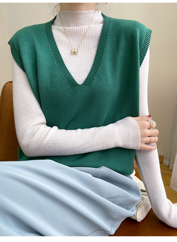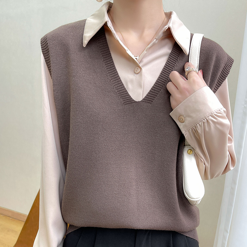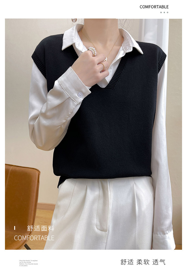 가을과 겨울 새로운 니트 스웨터 조끼 여성 V 넥 민소매 스웨터 니트 조끼 느슨한 플러스 사이즈 매칭 셔츠스토어 가기