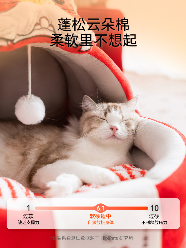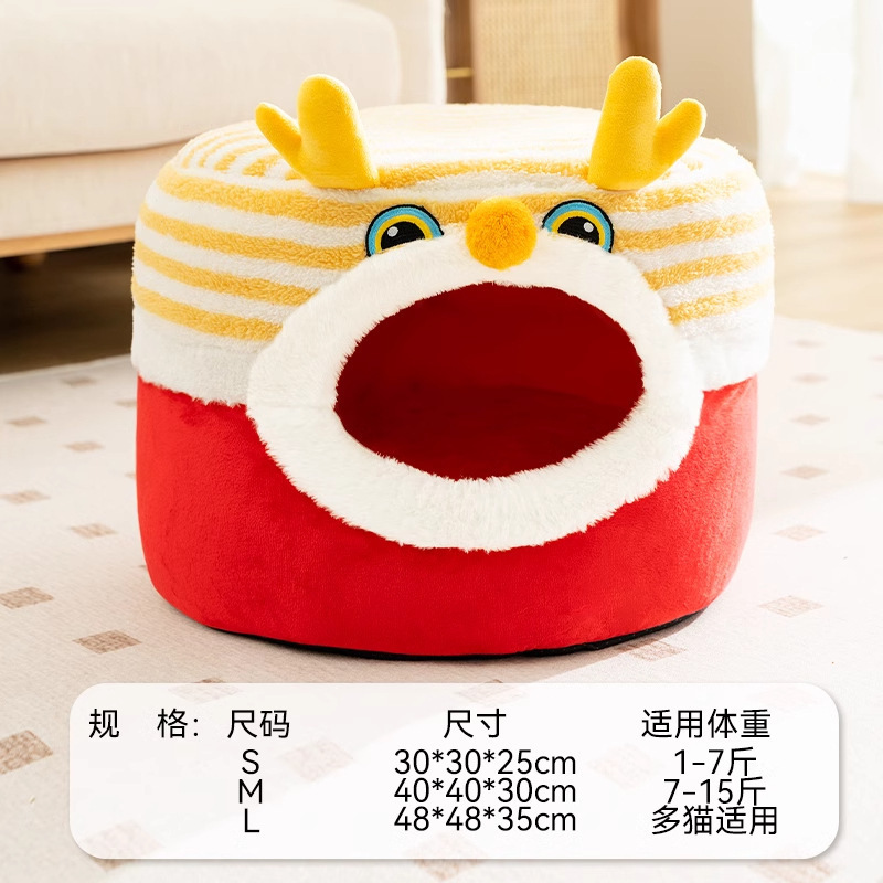 가을과 겨울 고양이 둥지 새해 해피 해피 포춘 세미 클로즈 요람 둥지 두꺼운 따뜻한 테디 작은 개 애완 동물 둥지