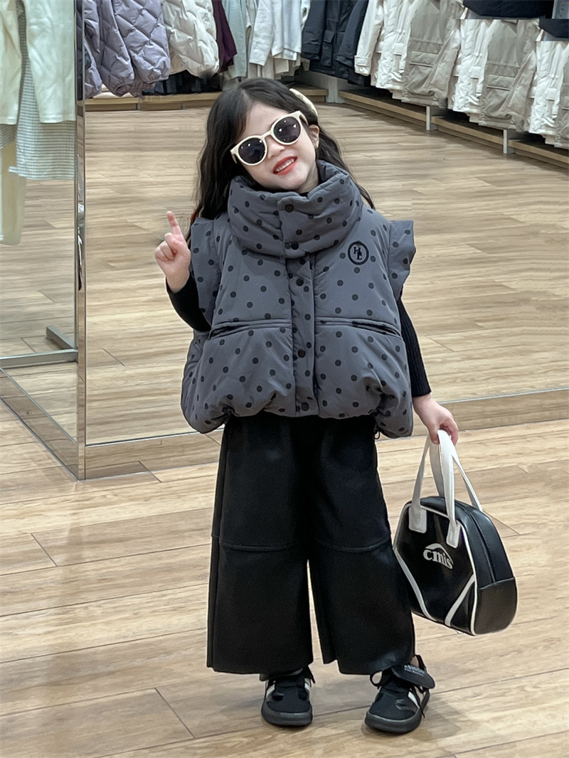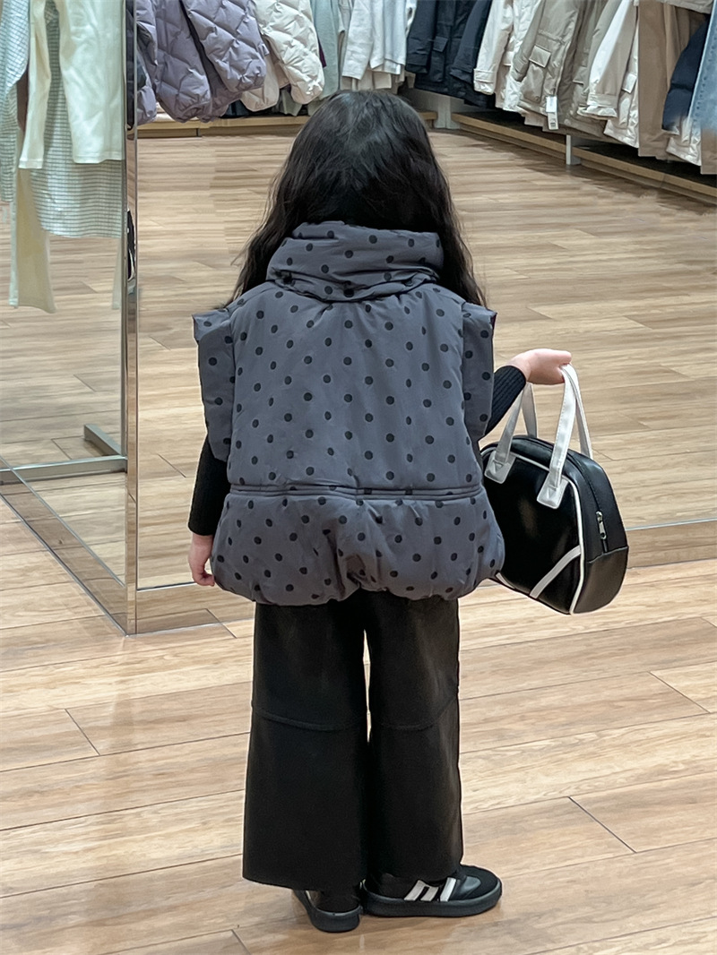 소녀 두꺼운 따뜻한 다운 코튼 그레이 하단 웨이브 도트 분리 가능한 스카프 겨울 비행 슬리브 웨어 조끼스토어 가기