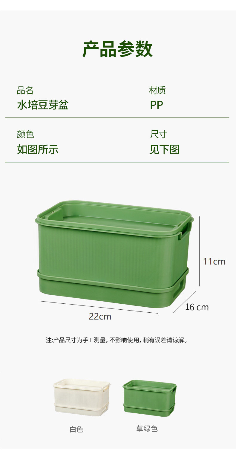 싹을 내리는 데 특별히 사용되는 재배용 화분, 콩나물, 녹두나물, 콩나물 재배기, 물갈이가 필요 없는 묘목 재배용 트레이, 플라스틱 화분.