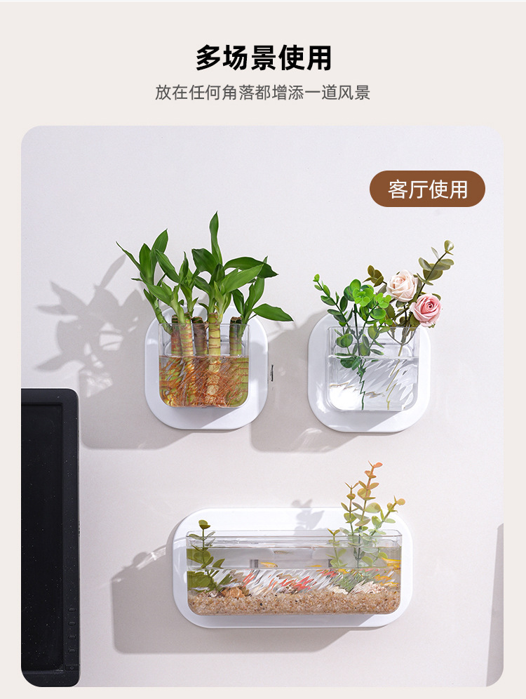 가정용 벽 플라스틱 꽃병 사무실 미니 벽 매달린 생선 탱크 수경 식물 꽃 냄비 거실 장식스토어 가기