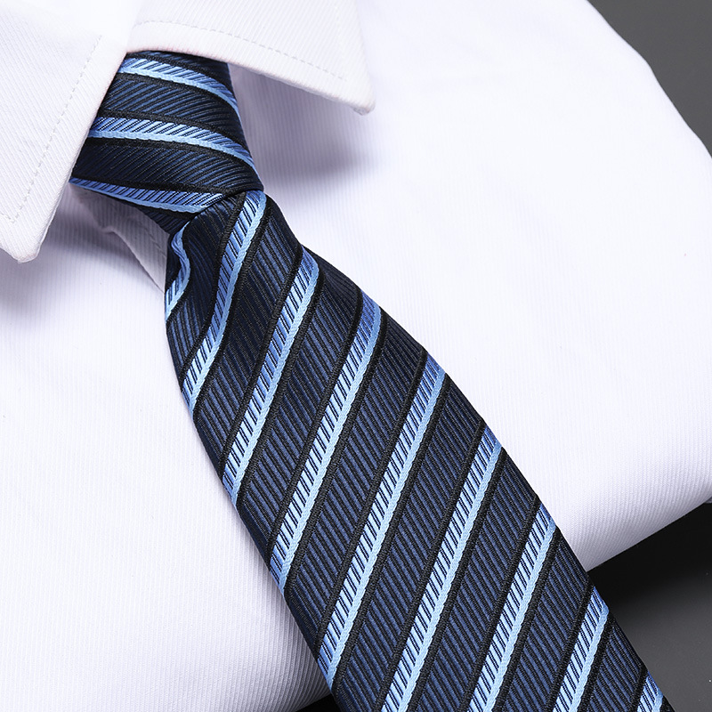 올 매치 블루 남성 비즈니스 지퍼 넥타이 공식 비즈니스 스트라이프 올 매치 프로 웨딩 신랑 한국식