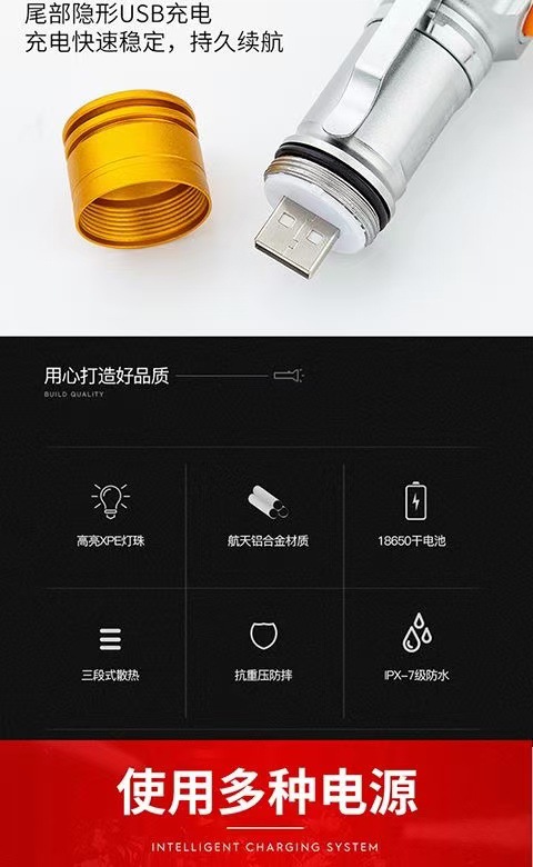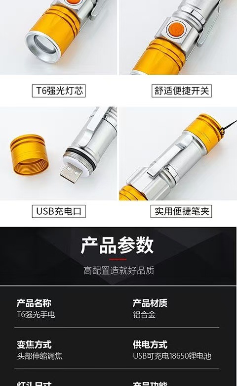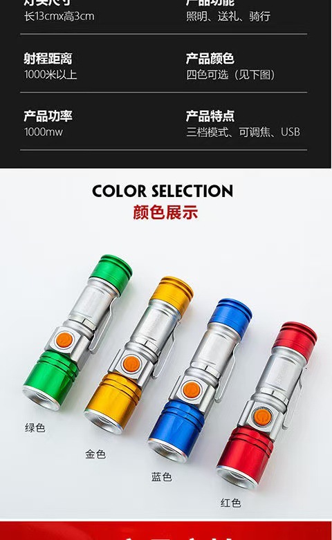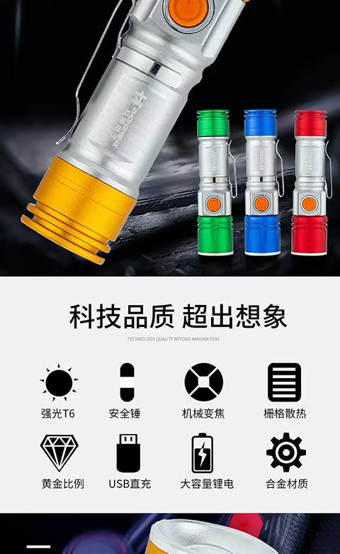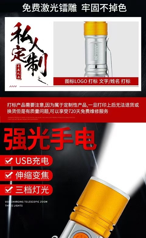 방수 야외 LED 강한 조명 조명 미니 손전등 야간 자전거 라이트 USB 충전 T6 선물스토어 가기