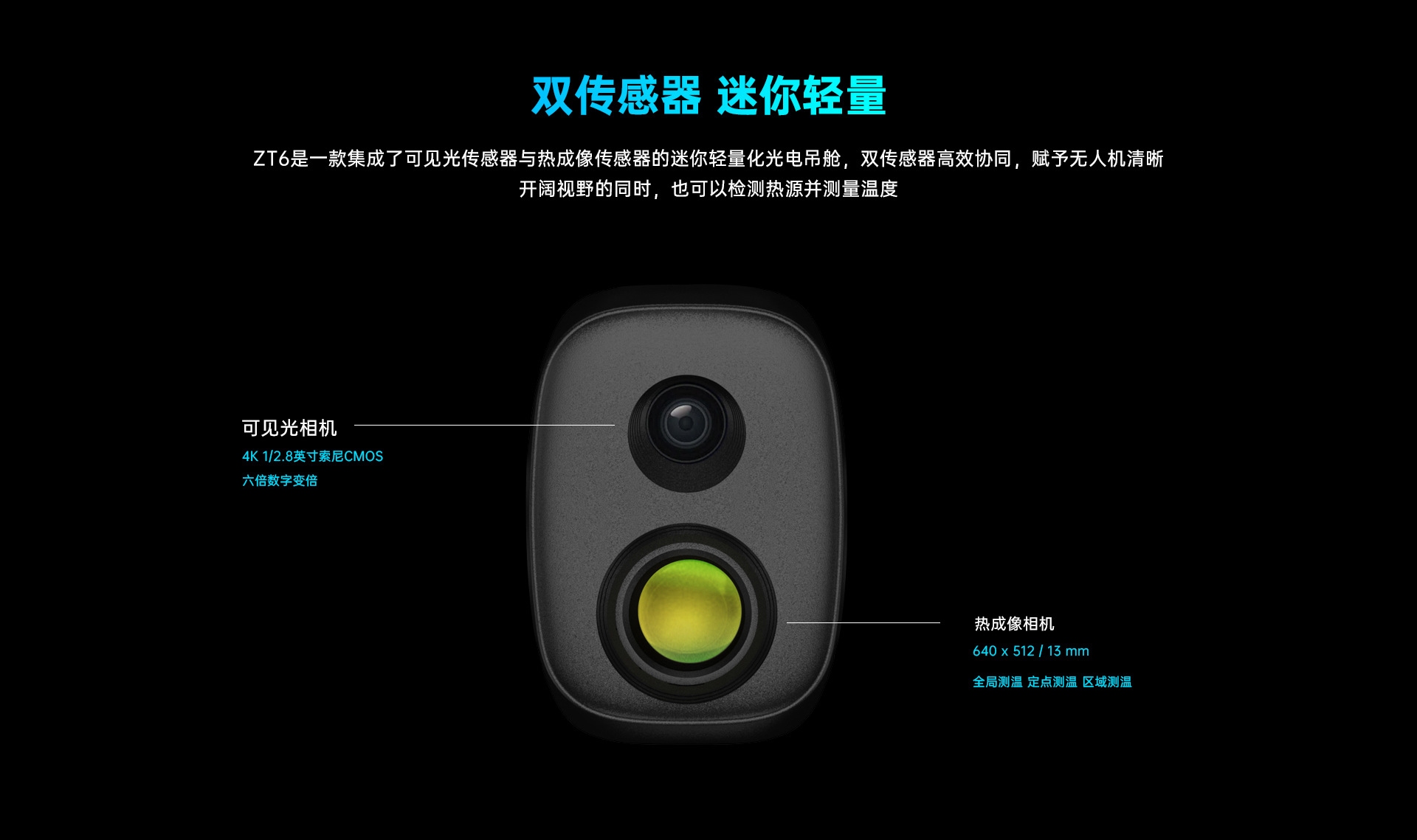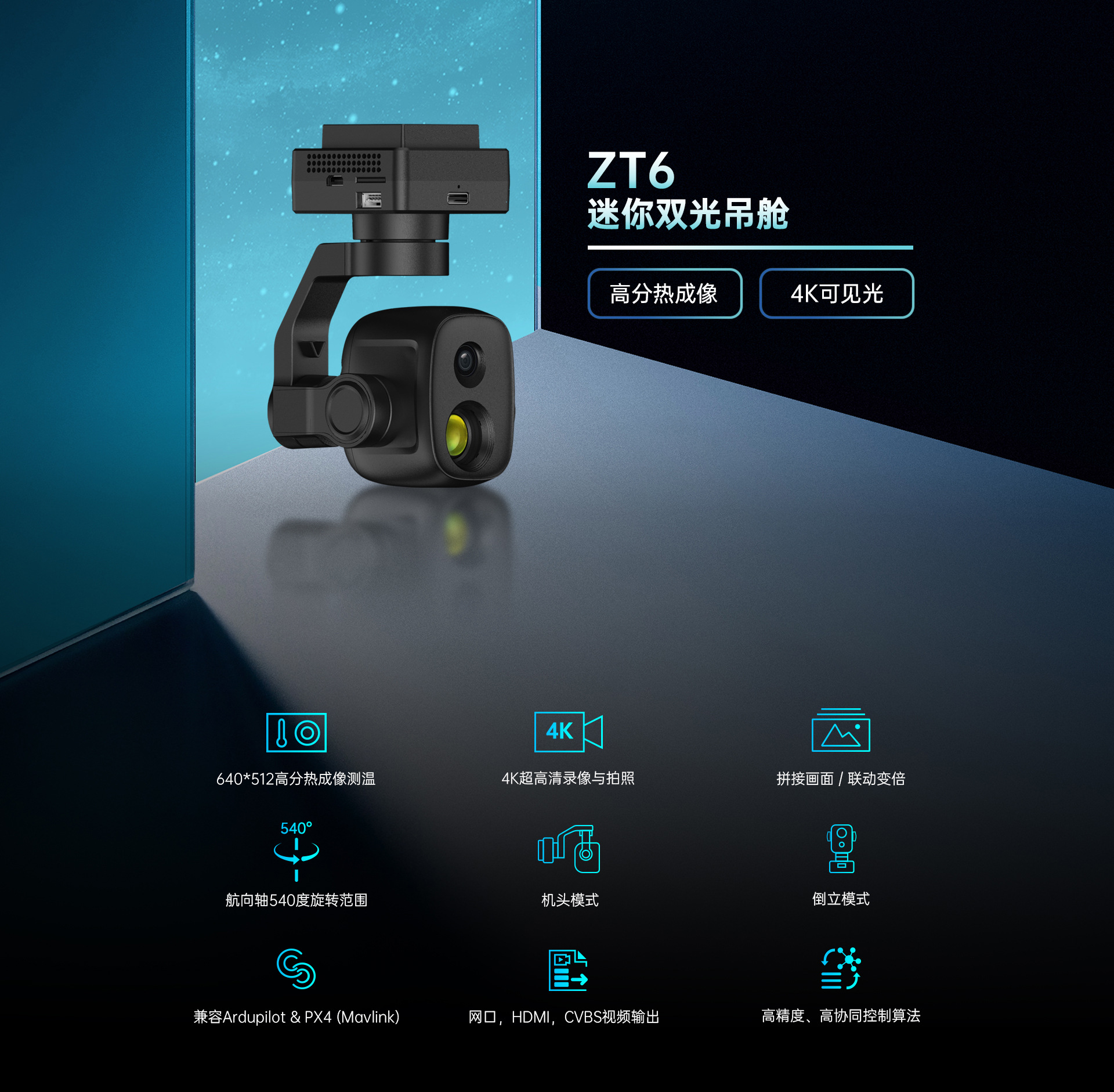 SIYI ZT6 드론 4K 가시 광선 적외선 미니 듀얼 라이트 포드 짐벌 카메라 열 화상 온도 측정