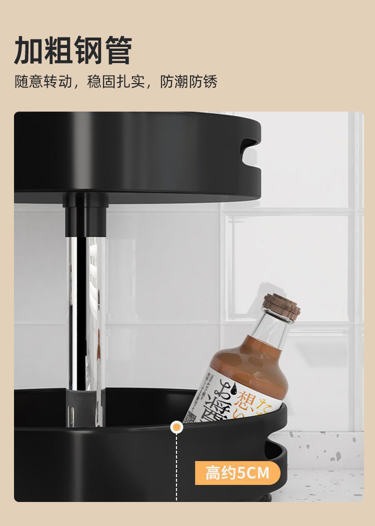 • [이중 지지대] 2단 소형 회전 스파이스 랙 - 매직 블랙 [오염 방지 및 방청]