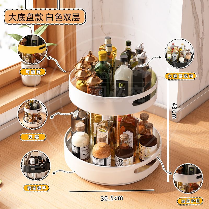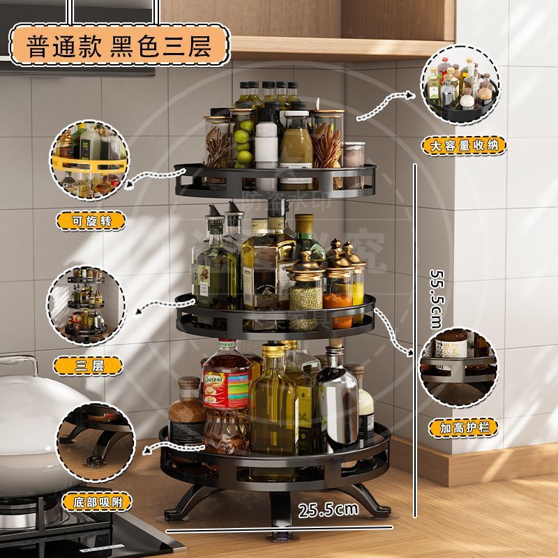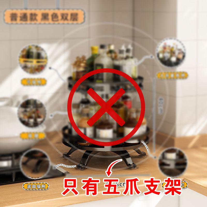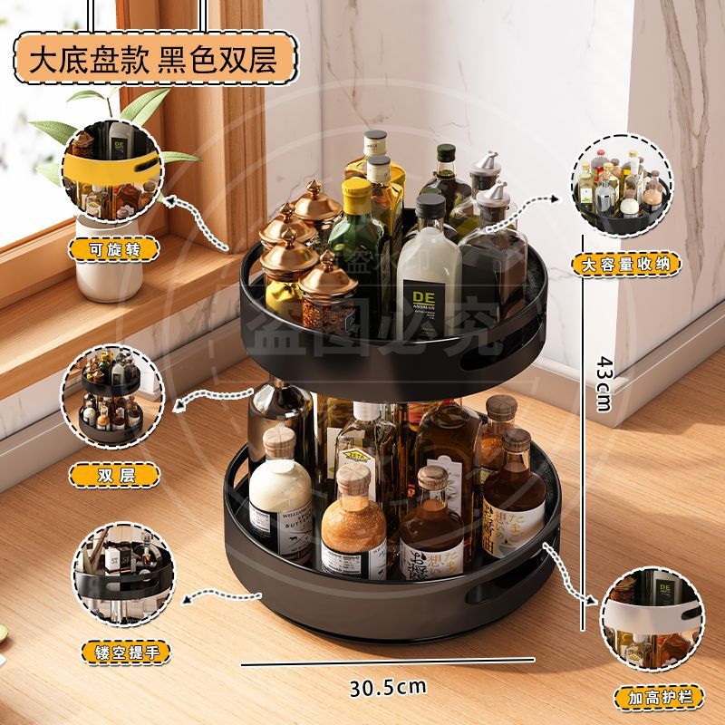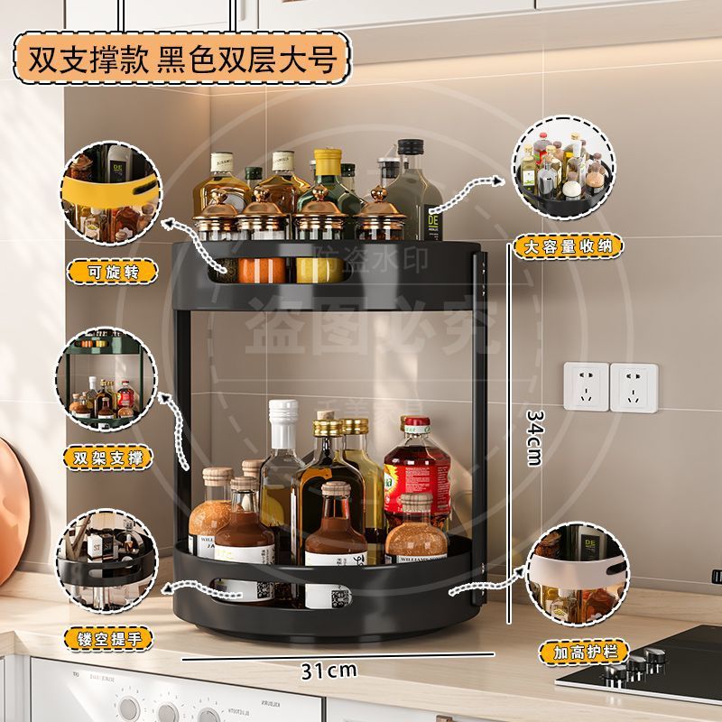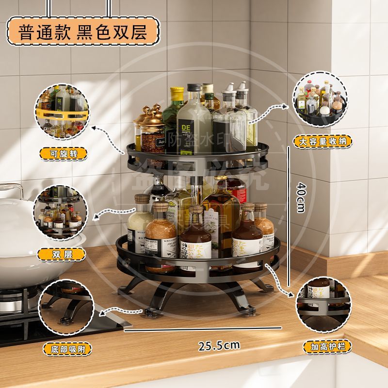 • [이중 지지대] 2단 대형 회전 스파이스 랙 - 매직 블랙 [오염 방지 및 방청]