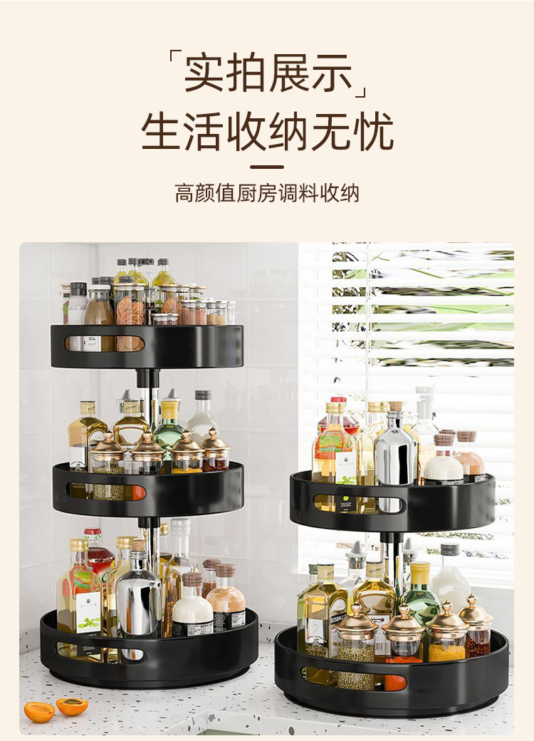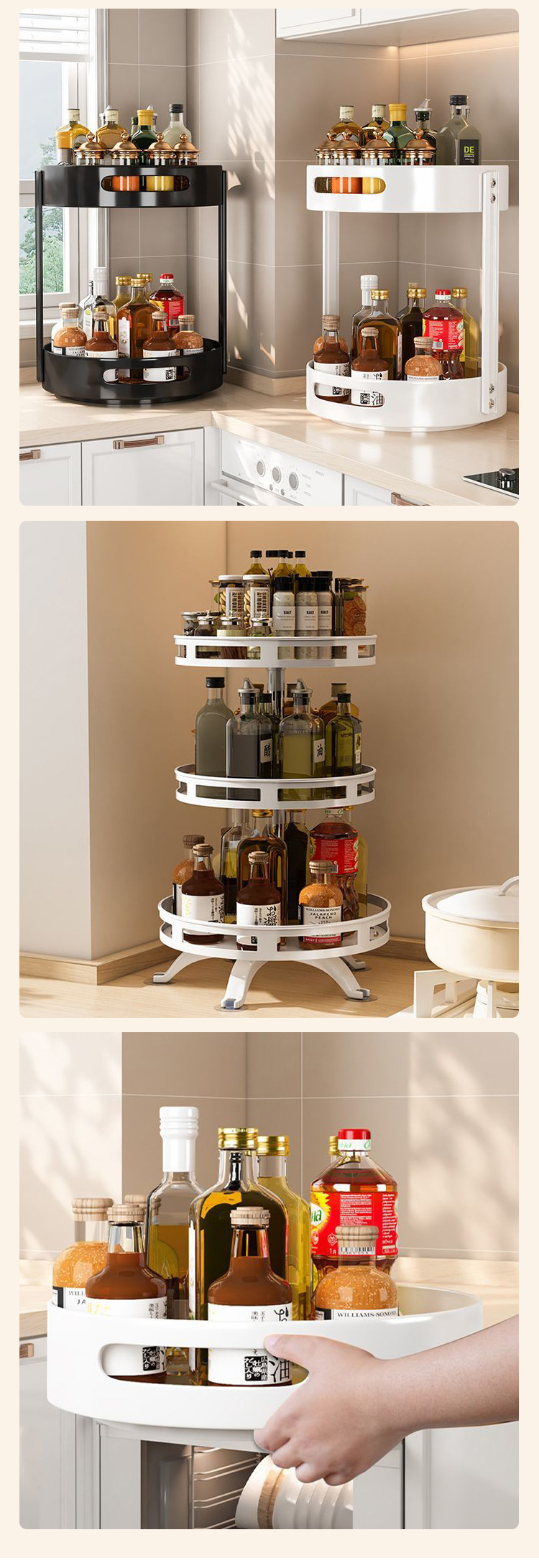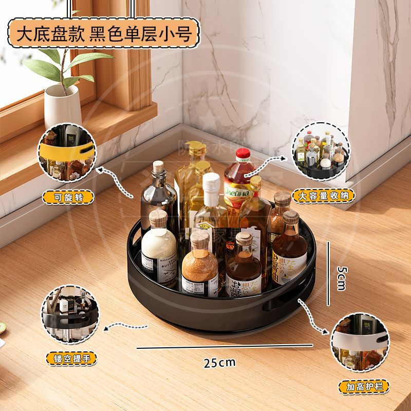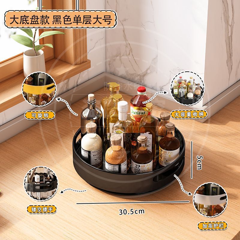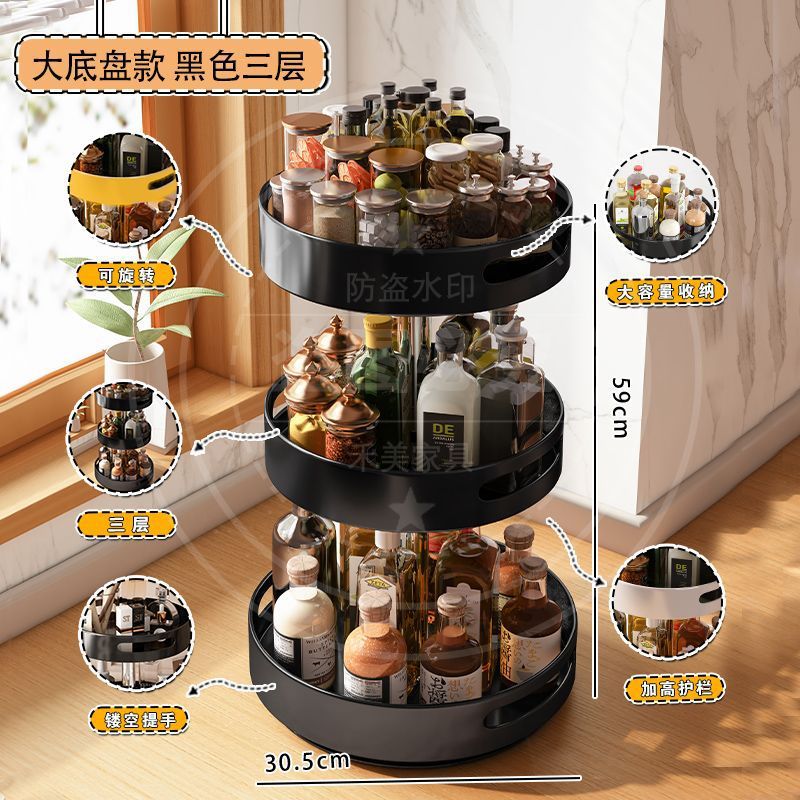 • [이중 지지대] 2단 대형 회전 스파이스 랙 - 매직 블랙 [오염 방지 및 방청]