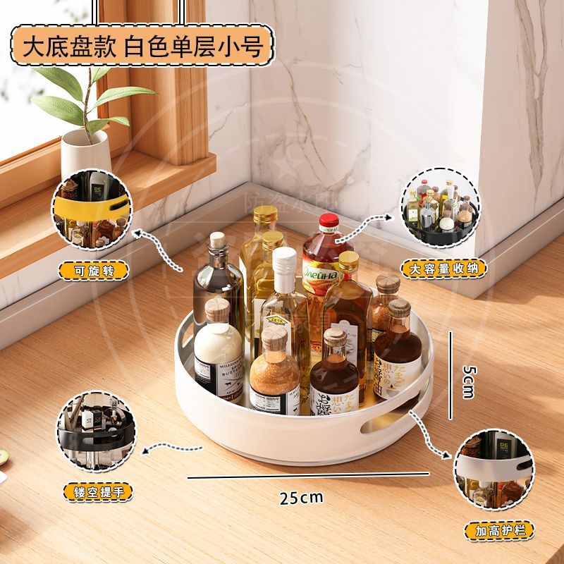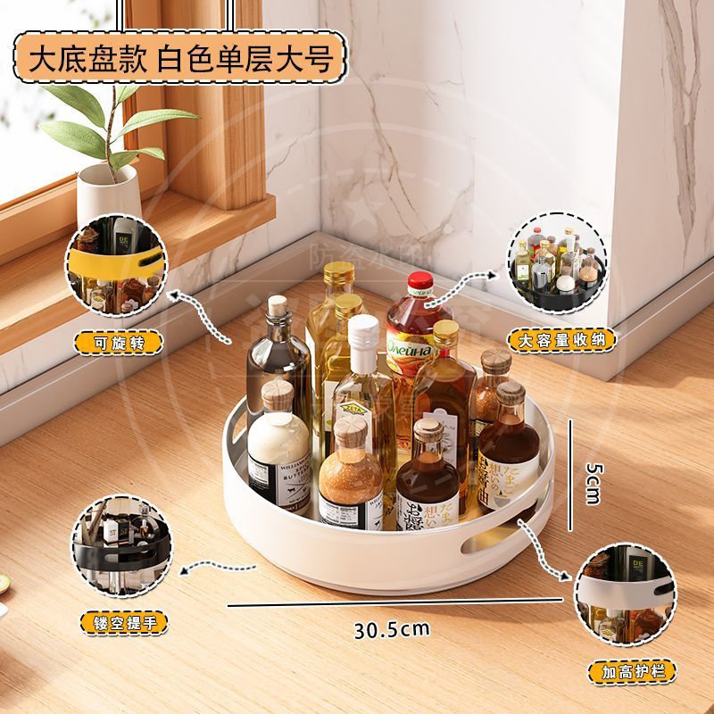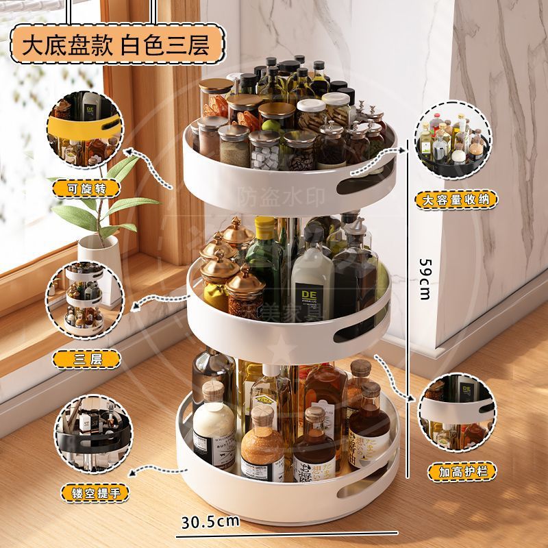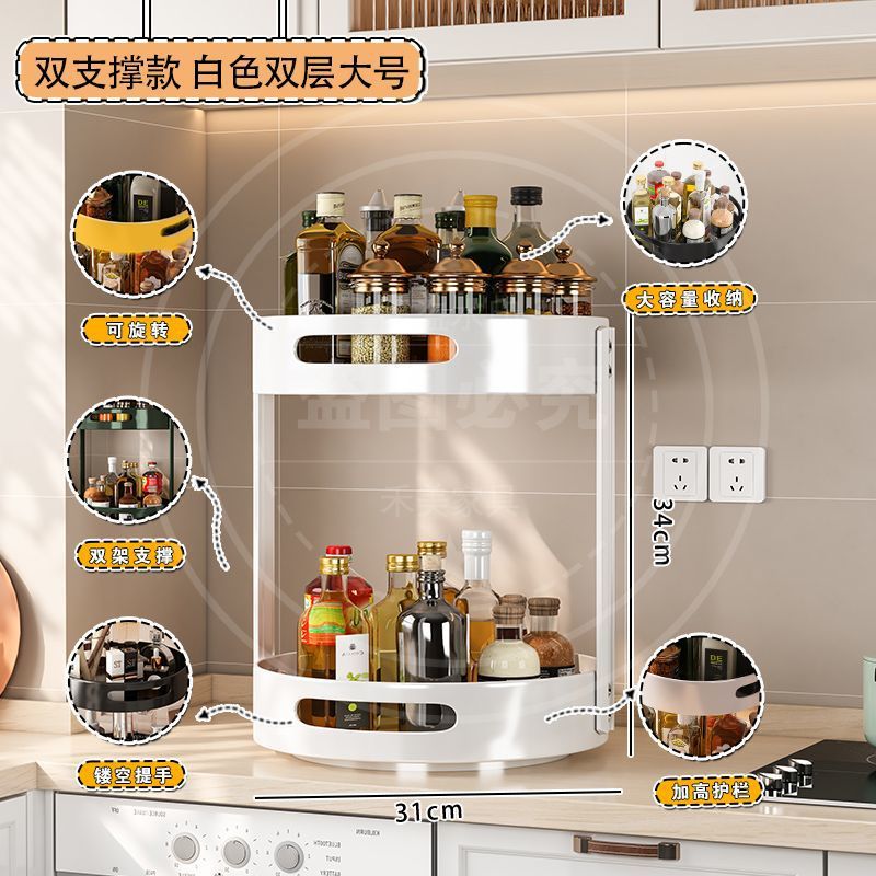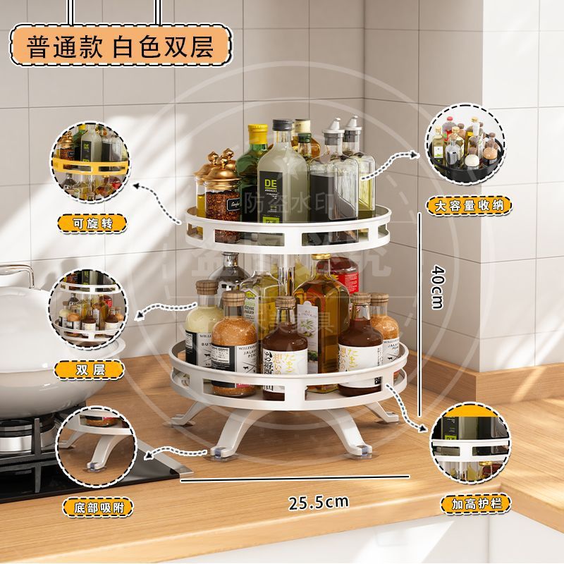 • [이중 지지대] 2단 대형 회전 스파이스 랙 - 대리석 화이트 [오염 방지 및 방청]