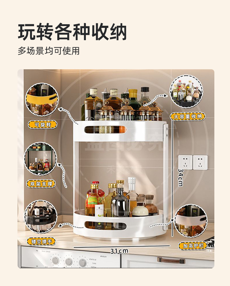 주방 양념 랙 가정용 카운터 탑 다기능 병 및 항아리 조미료 보관 제품 회전 스토리지 랙