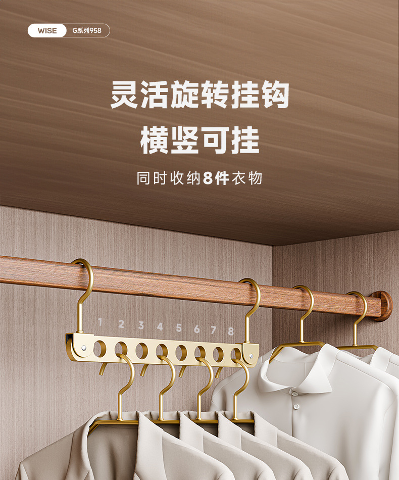 알루미늄 합금 8 홀 행거 원 후크 멀티 교수형 저장 아티팩트 가정용 다기능 접이식 옷걸이 스토리지 랙 도매