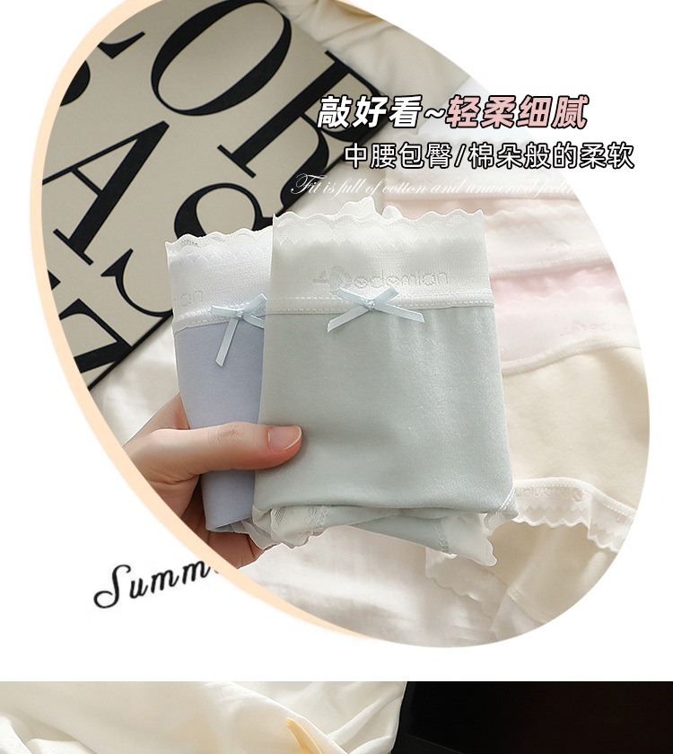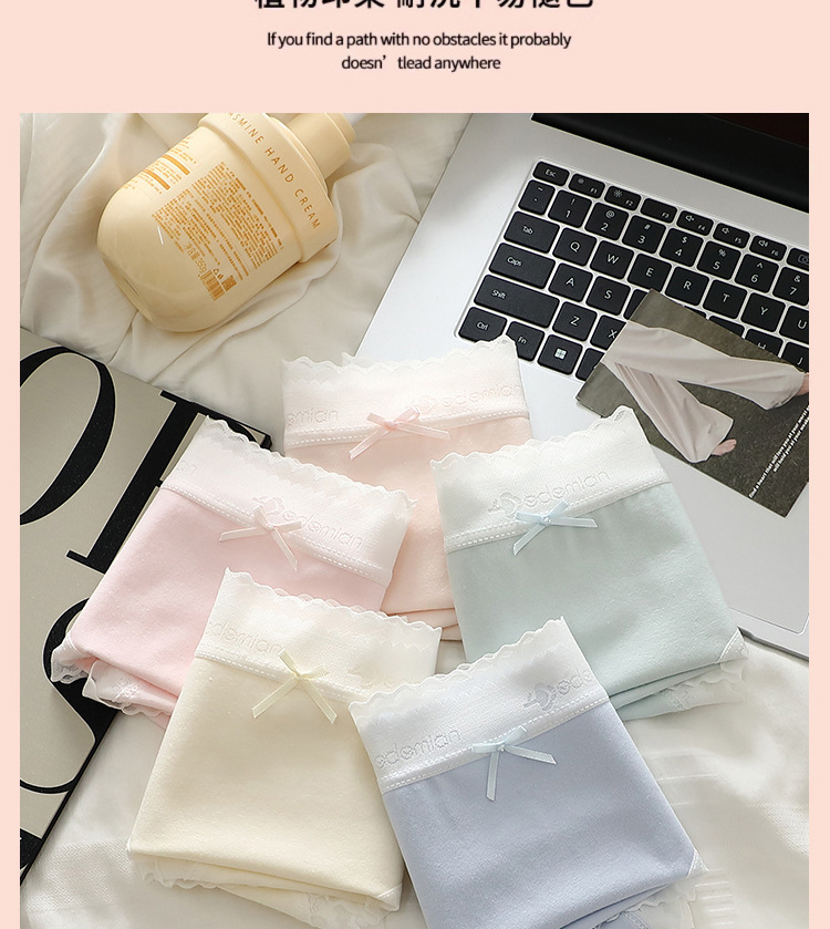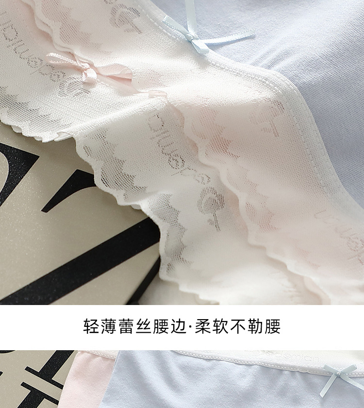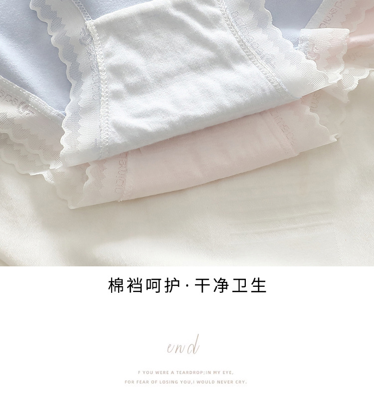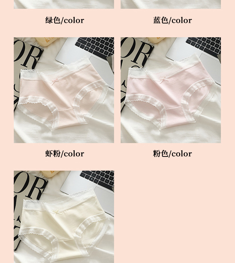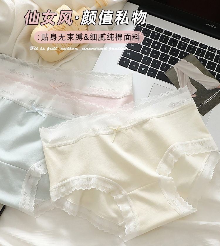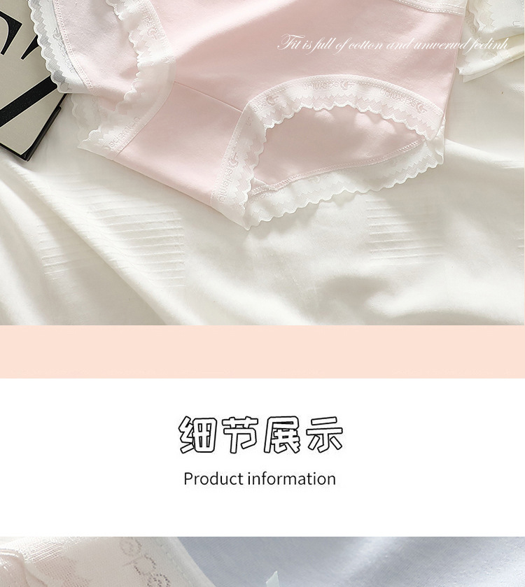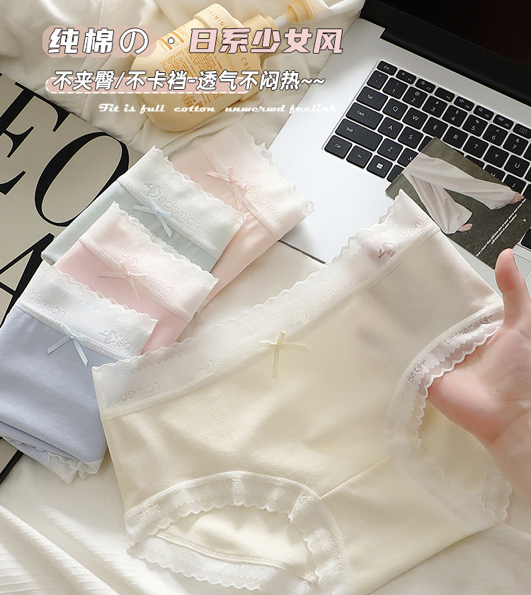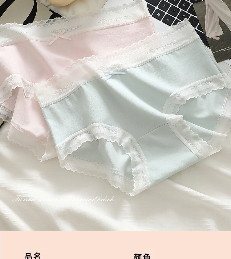순면 여성용 속옷, 중간 허리 높이, 통기성 좋은 순면 가랑이, 여학생용, 무봉제, 달콤한 레이스 삼각팬티 도매스토어 가기