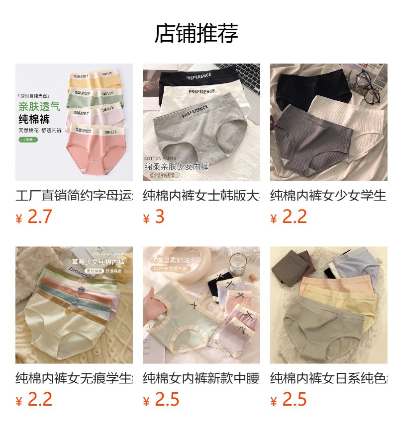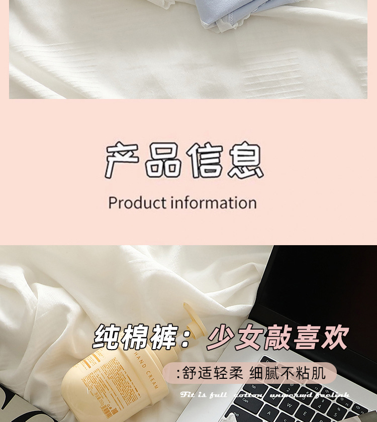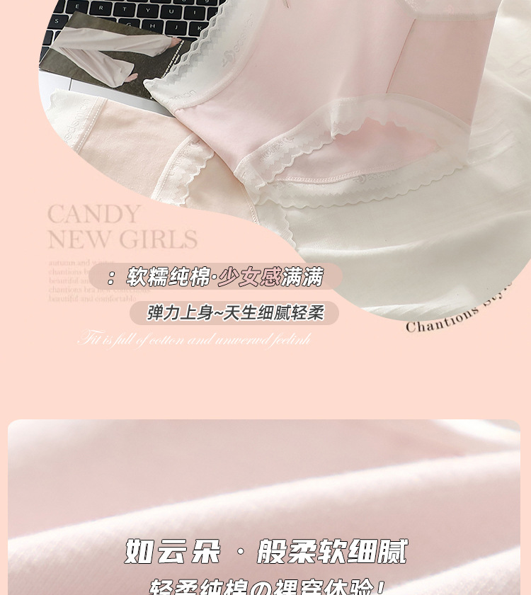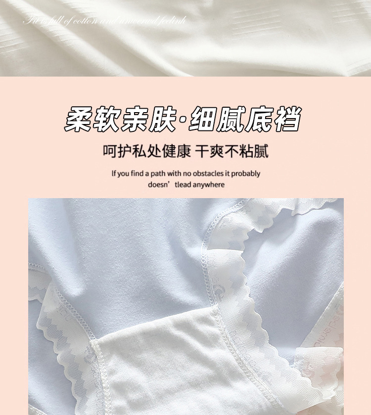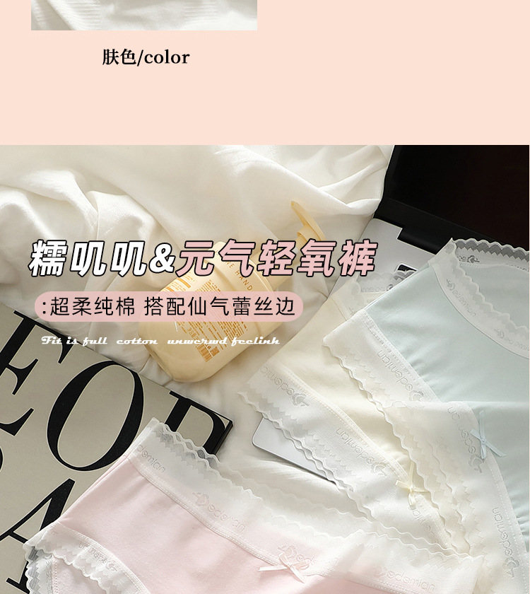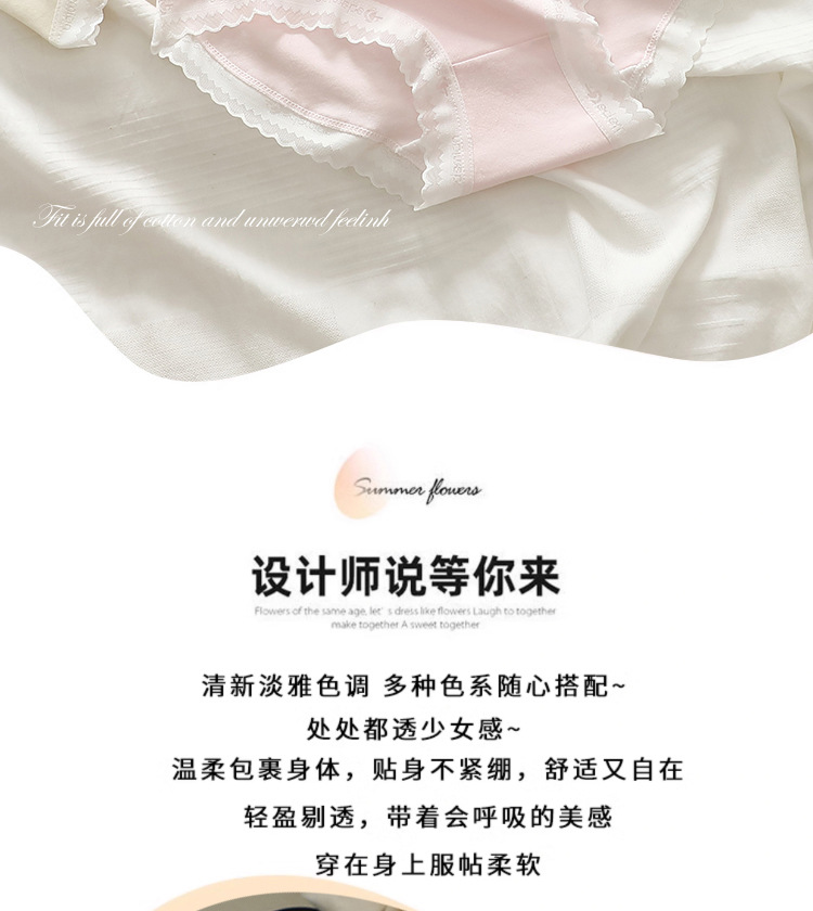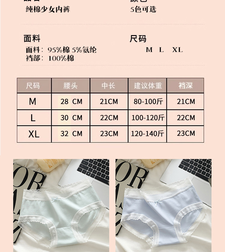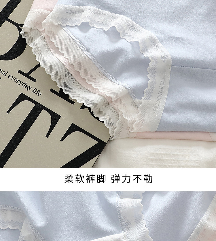순면 여성용 속옷, 중간 허리 높이, 통기성 좋은 순면 가랑이, 여학생용, 무봉제, 달콤한 레이스 삼각팬티 도매스토어 가기