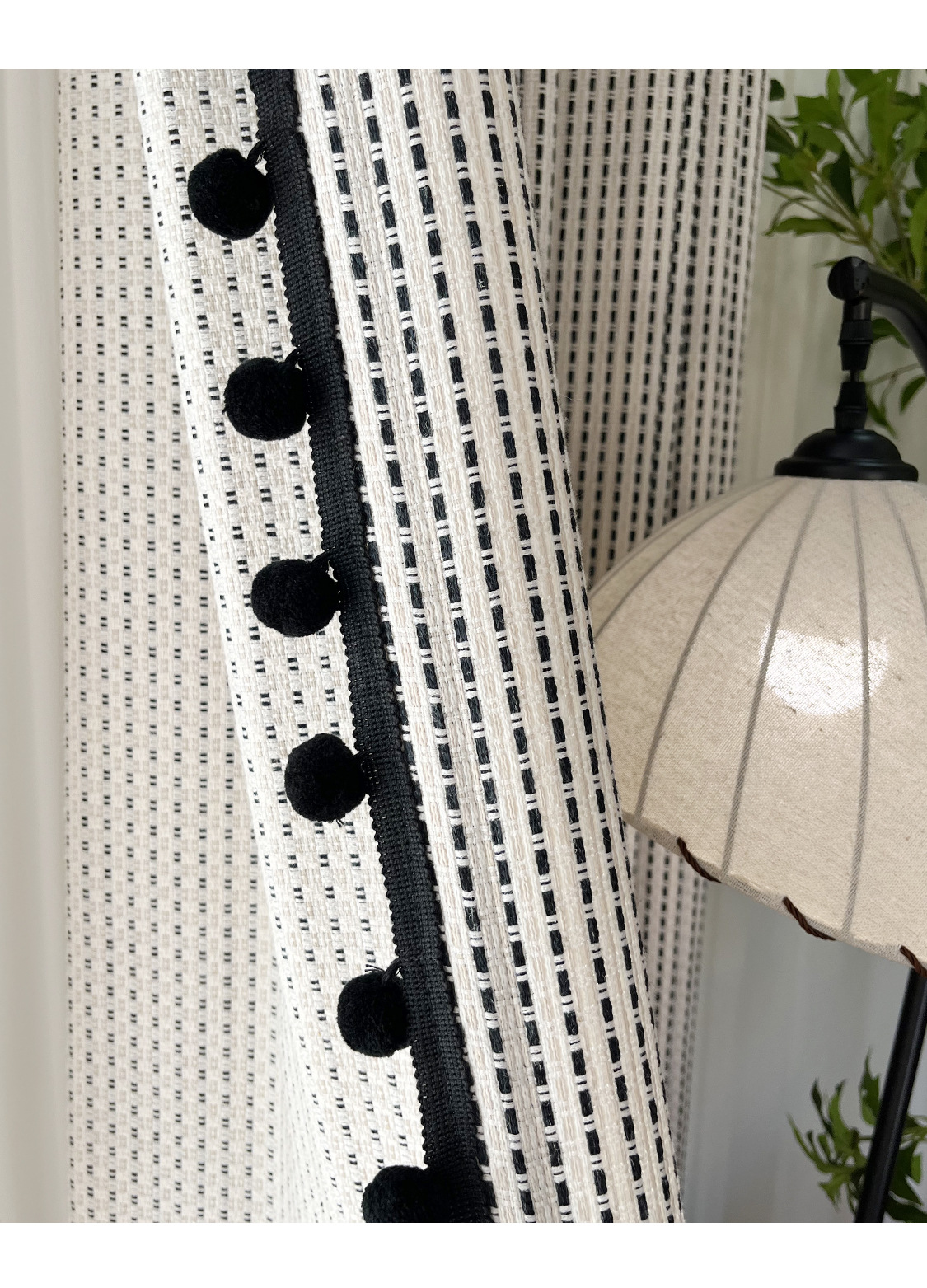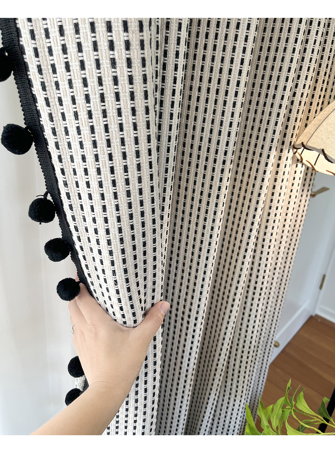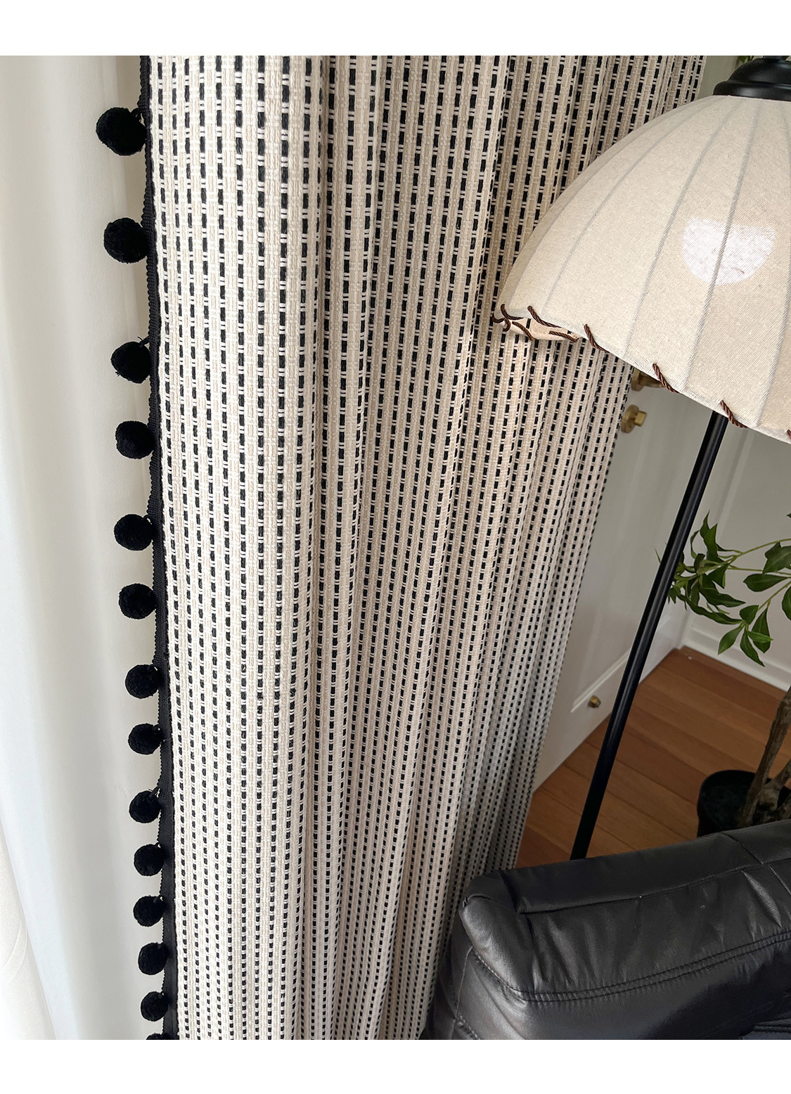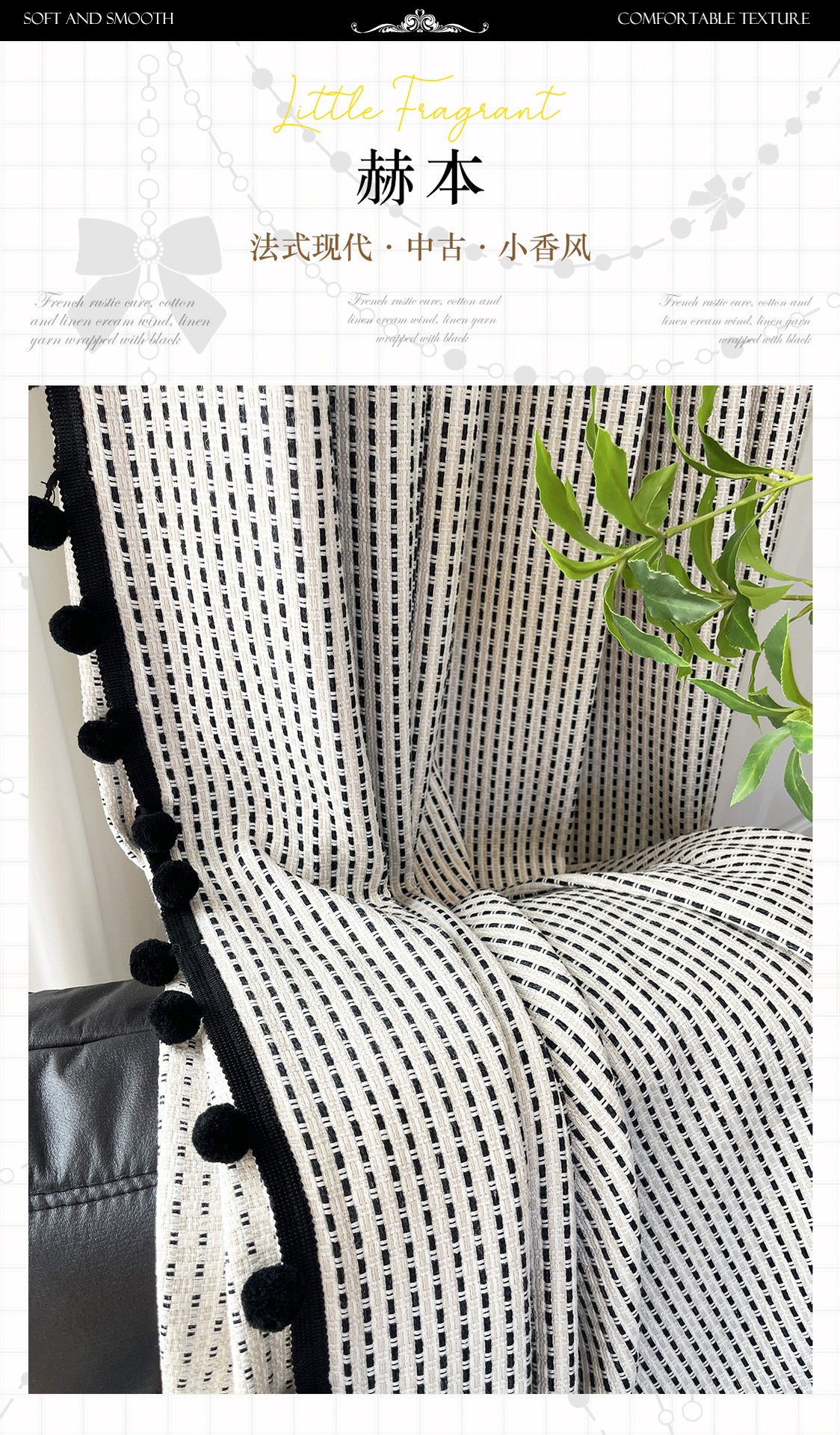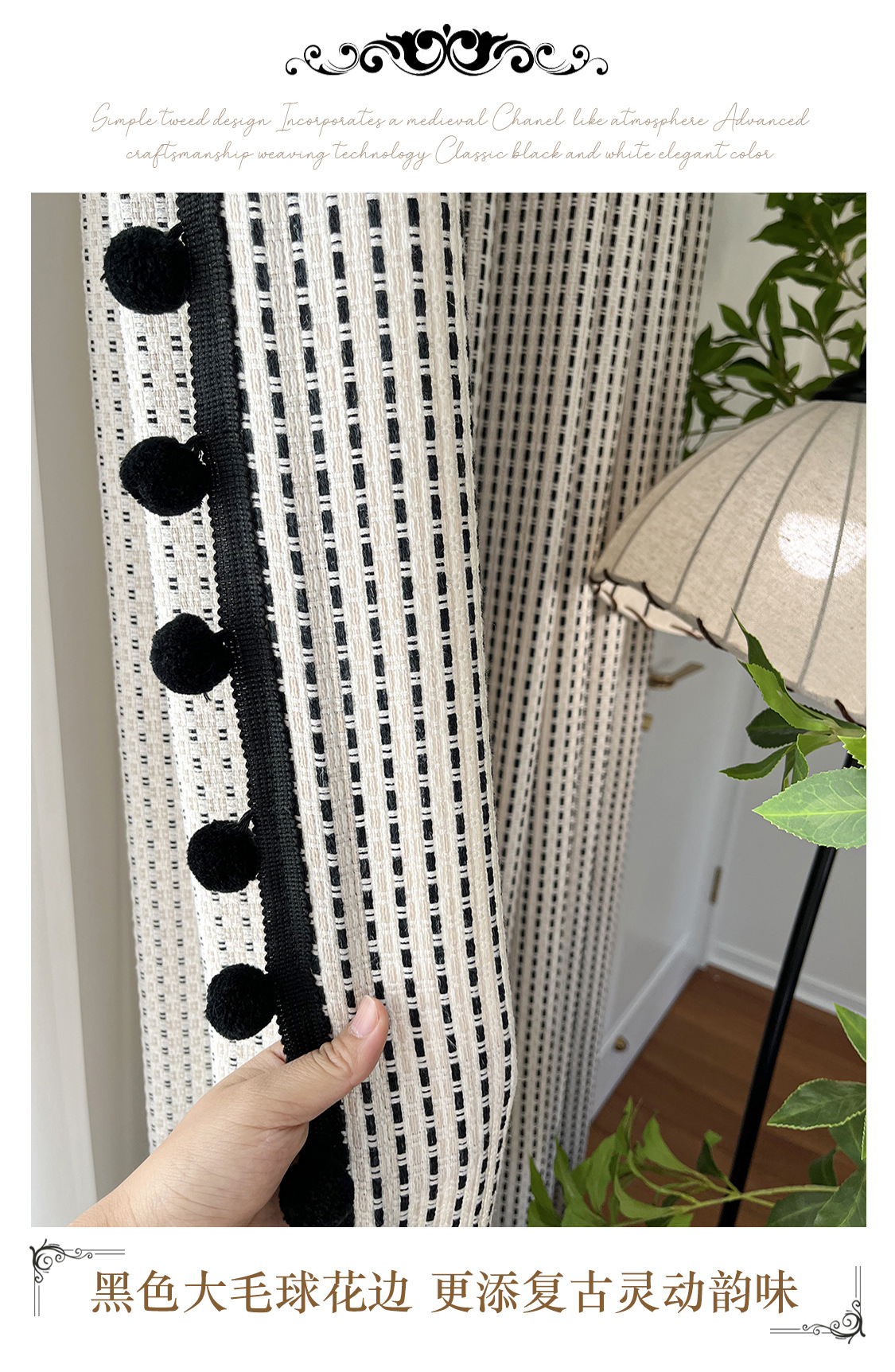 헵번 프렌치 스타일 작은 샤넬 스타일 골동품 스타일 빈티지 블랙 스트라이프 코튼 린넨 커튼 거실 침실