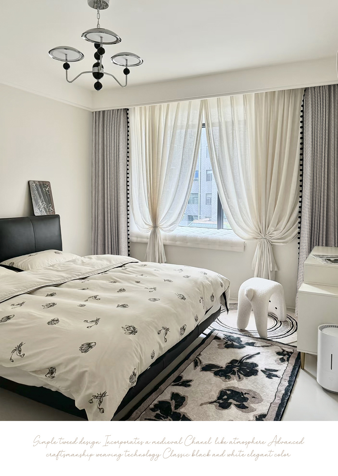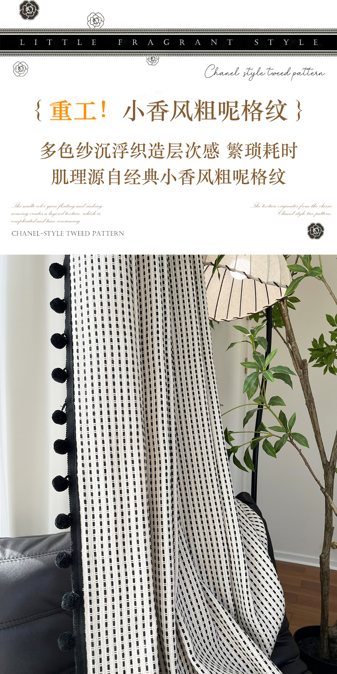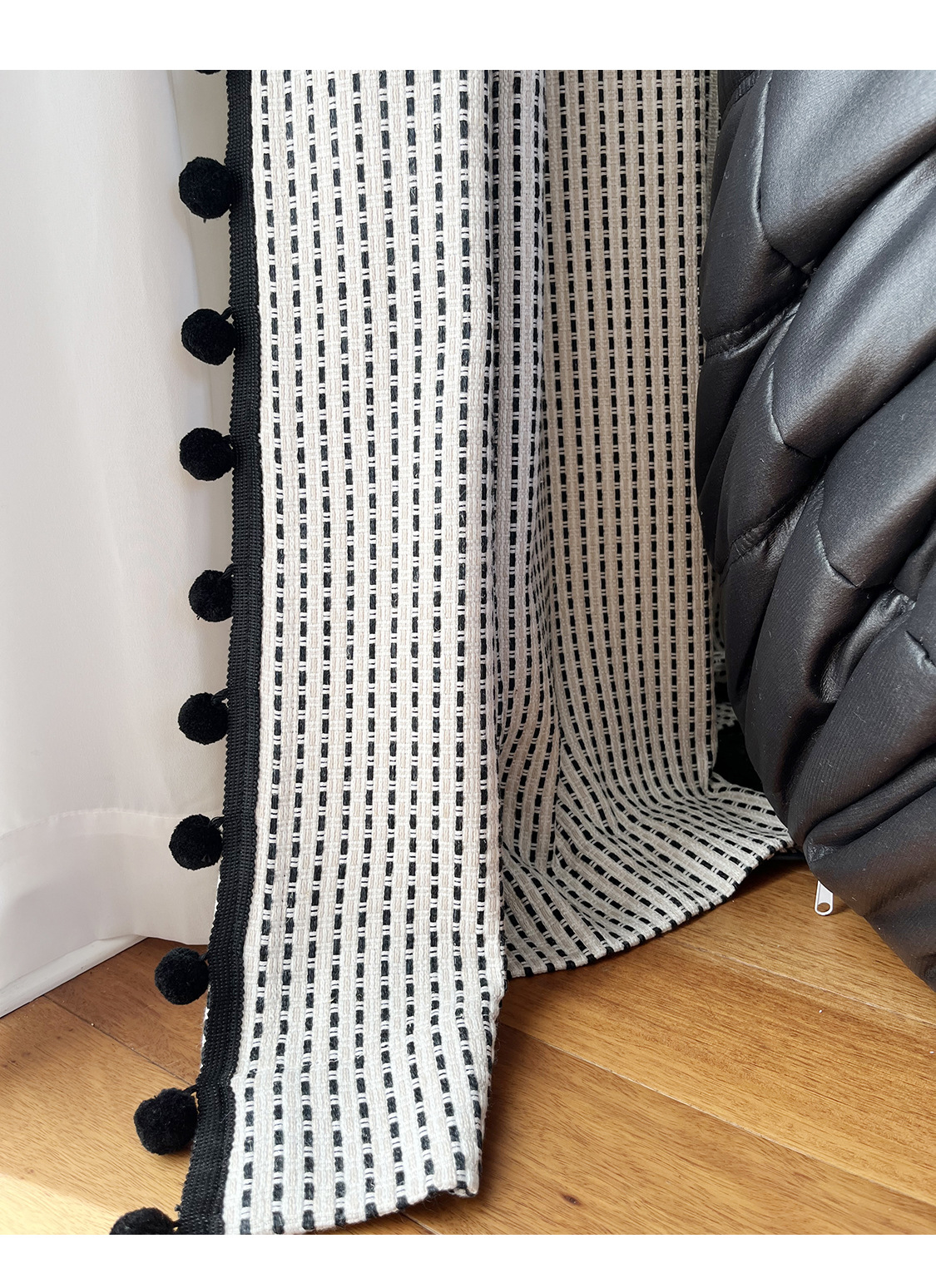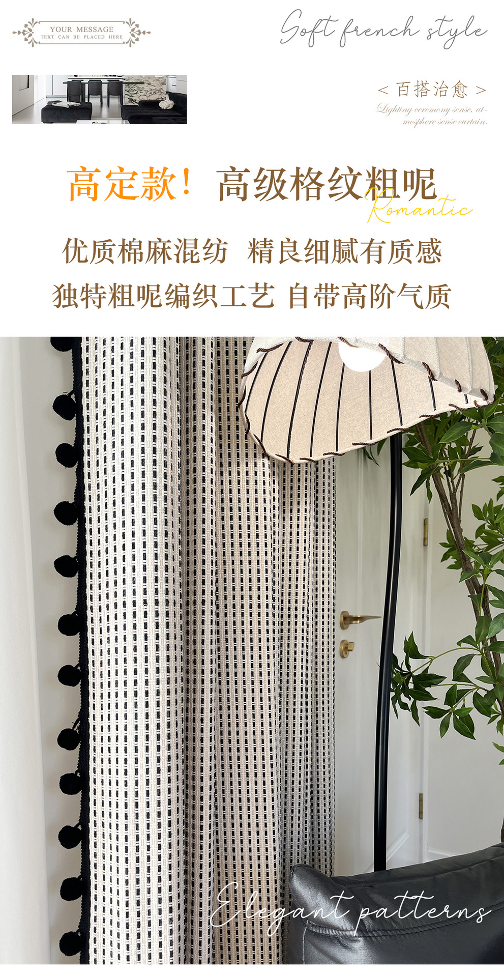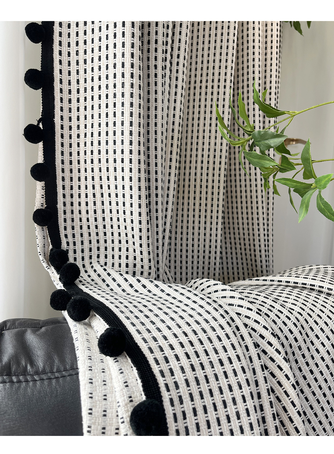 헵번 프렌치 스타일 작은 샤넬 스타일 골동품 스타일 빈티지 블랙 스트라이프 코튼 린넨 커튼 거실 침실
