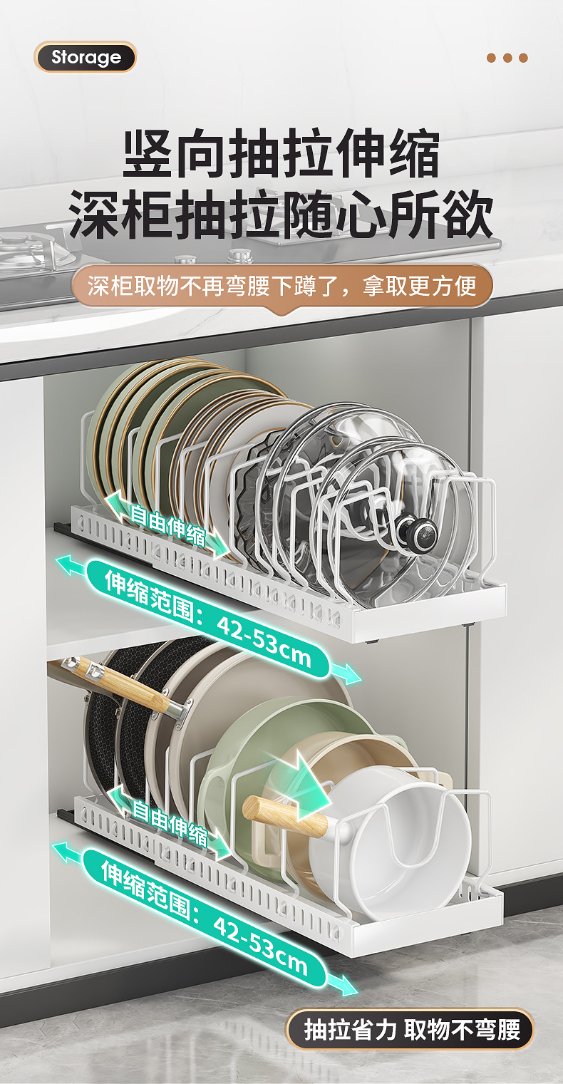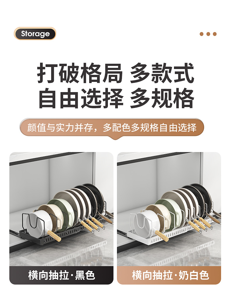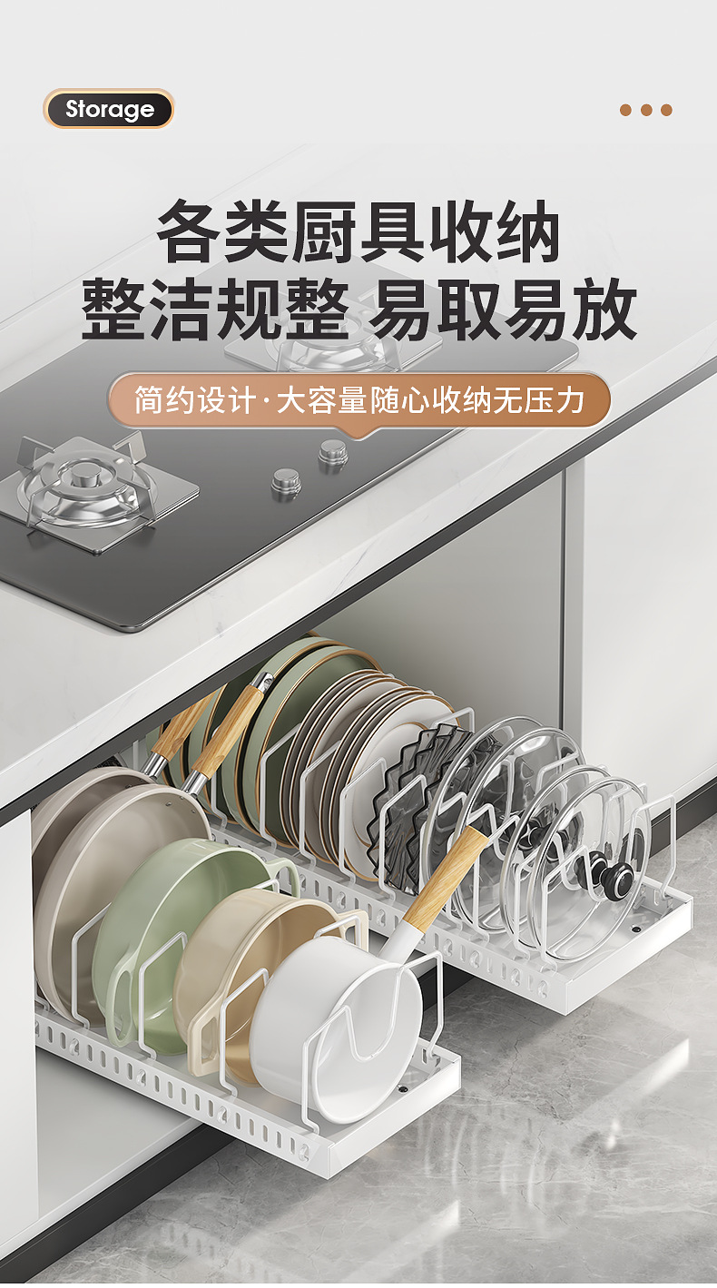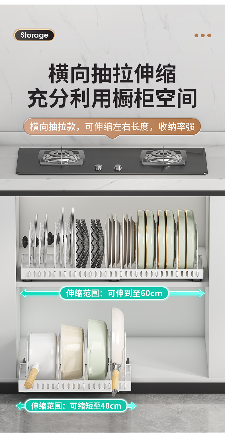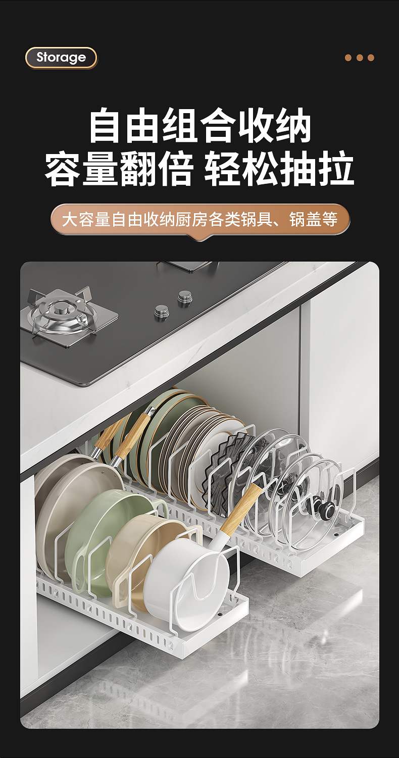 주방용 풀아웃 수납선반, 확장형 조리대 캐비닛, 다층 접시, 접시뚜껑, 냄비수납선반, 냄비걸이