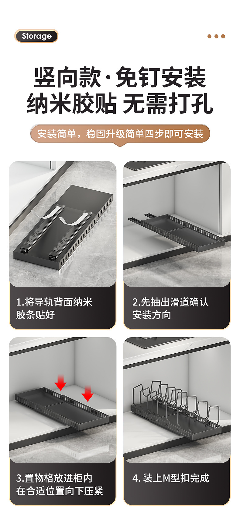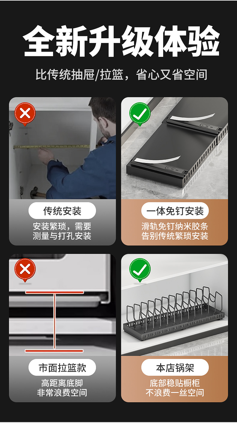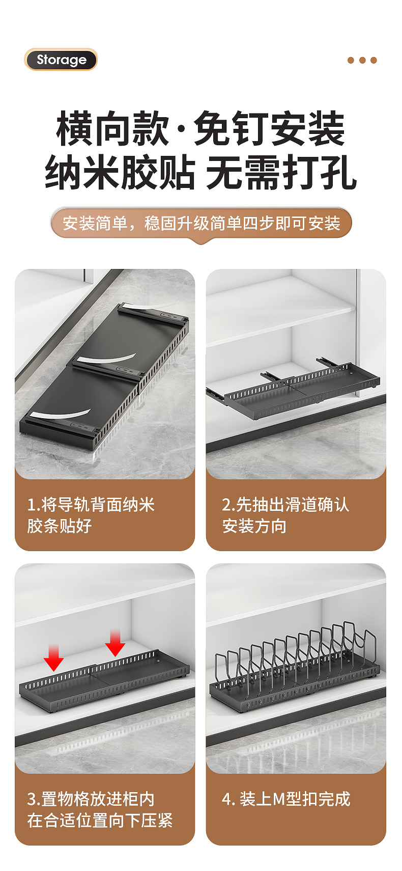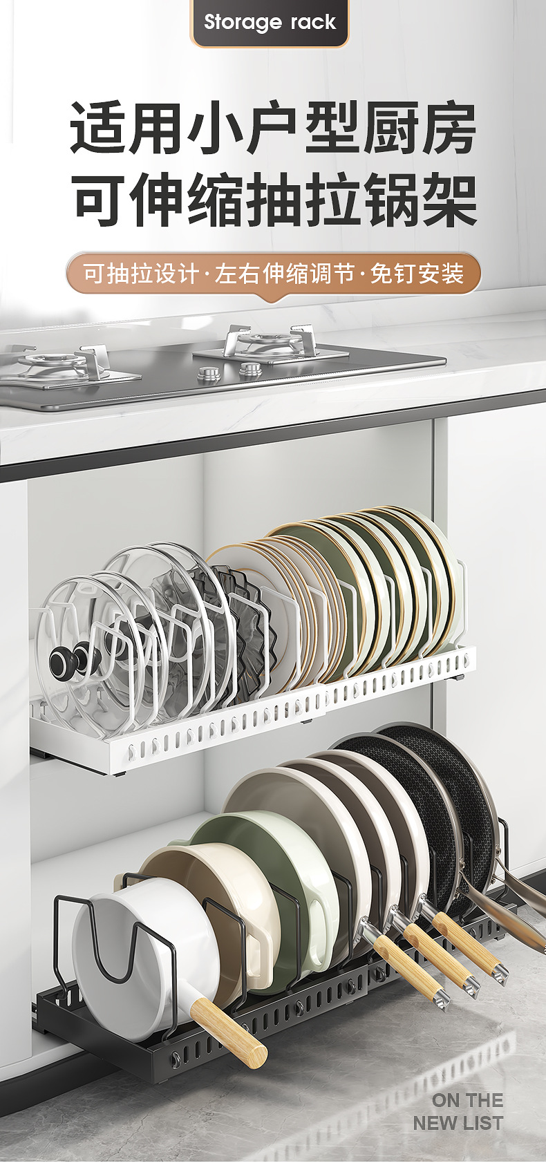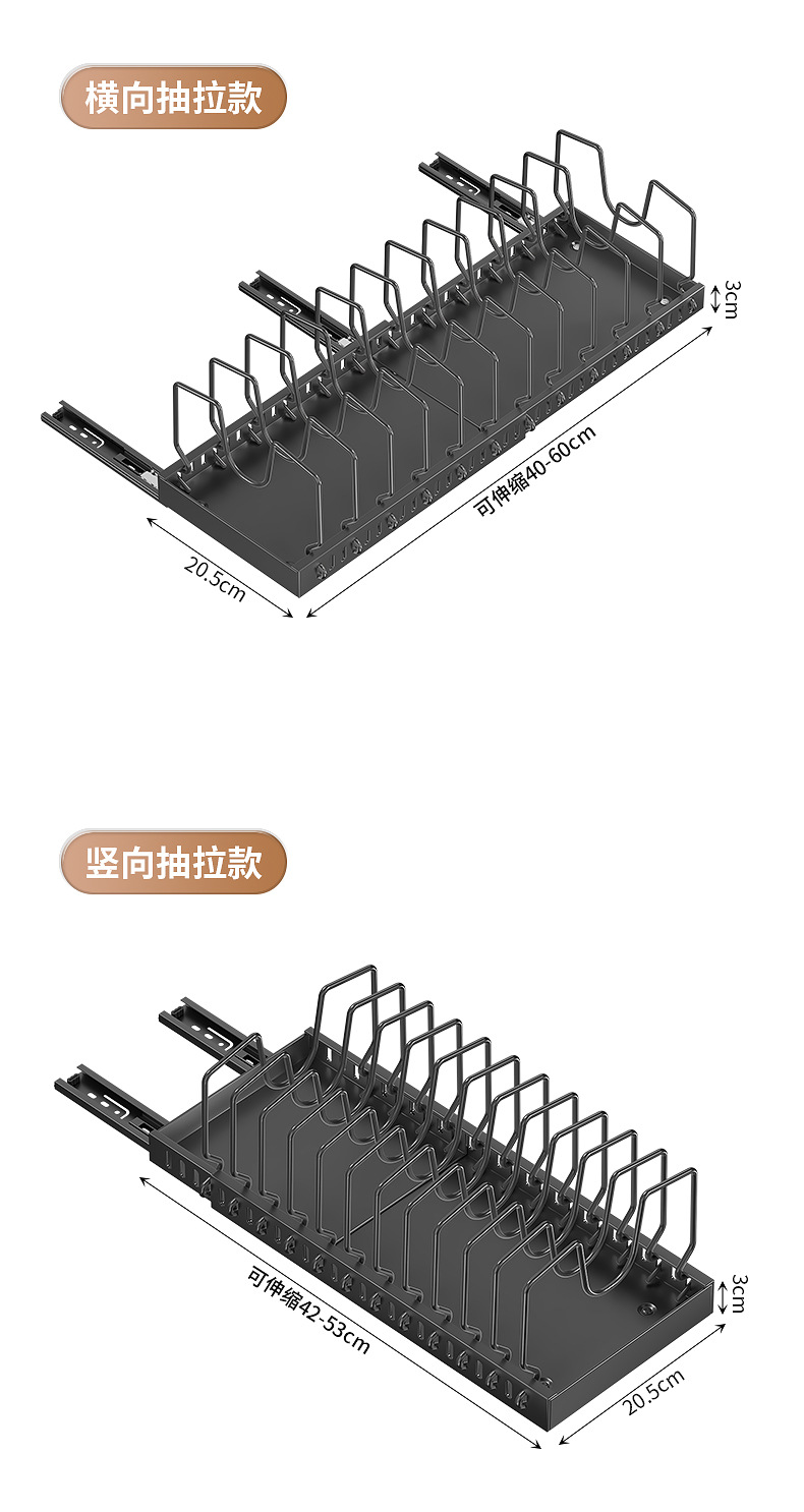 주방용 풀아웃 수납선반, 확장형 조리대 캐비닛, 다층 접시, 접시뚜껑, 냄비수납선반, 냄비걸이