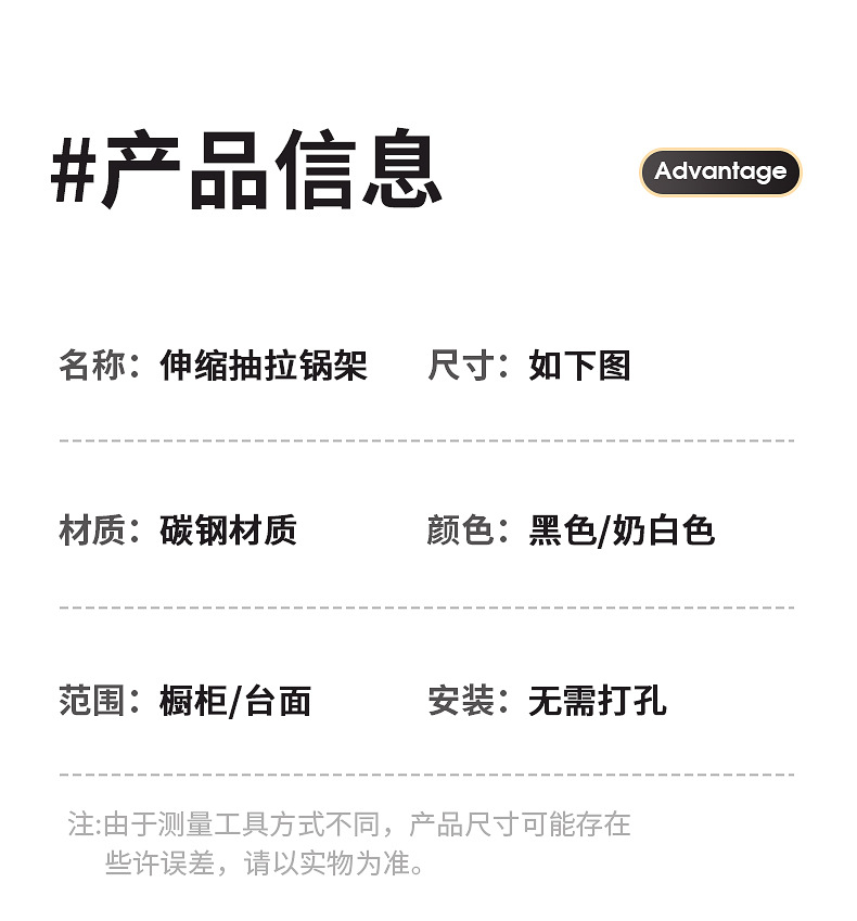 • 검정색 수평 텔레스코픽 풀아웃 냄비걸이(12줄)(40-60)