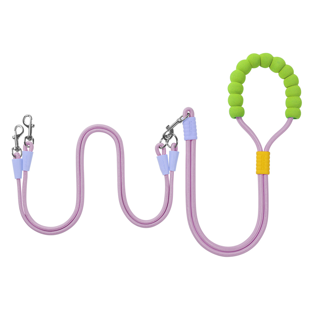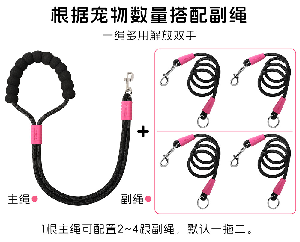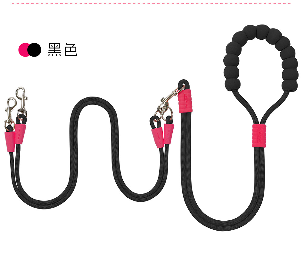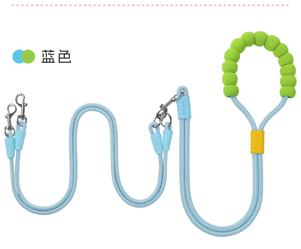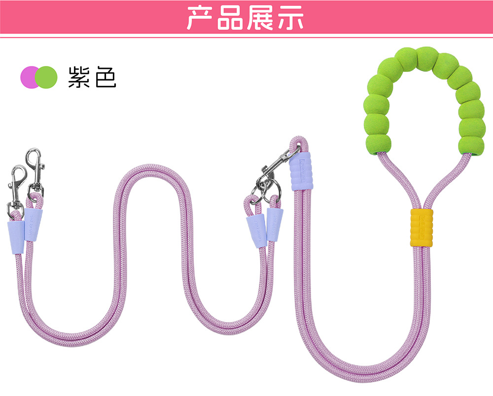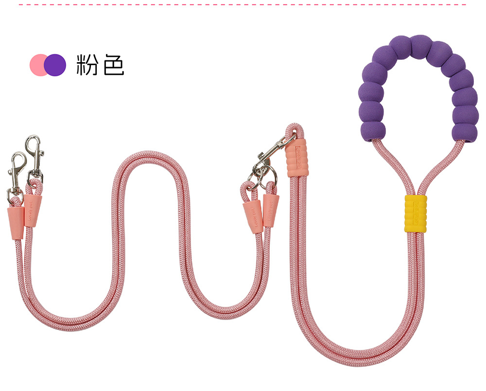 크로스 바디 애완 동물 가죽 끈 1 대 2 도파민 컬러 도그 워킹 로프 착용 방지 멀티 헤드 분리 가능한 개 가죽 끈