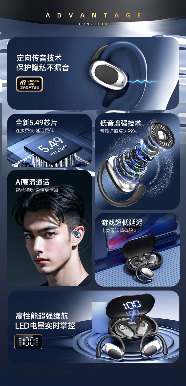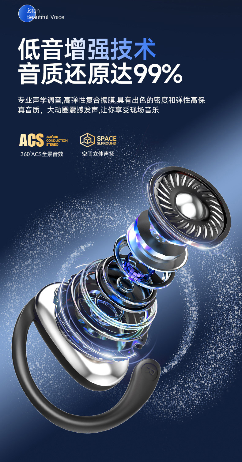 새로운 베를린 음성 귀걸이 무선 블루투스 헤드셋 긴 내구성 소음 감소 전화 실행 유니버설 도매