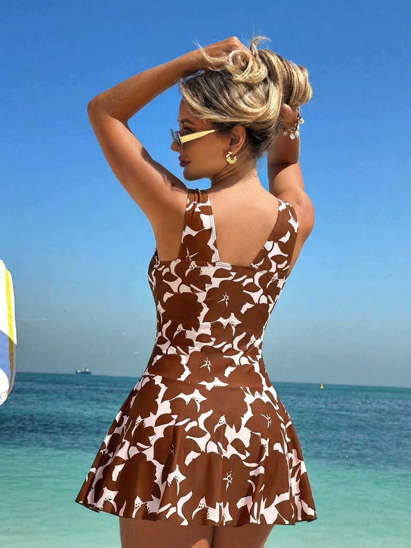2025 새로운 인쇄 된 백리스 원피스 수영복 국경 간 AliExpress V 넥 수영복 보수적 온천 수영복 여성