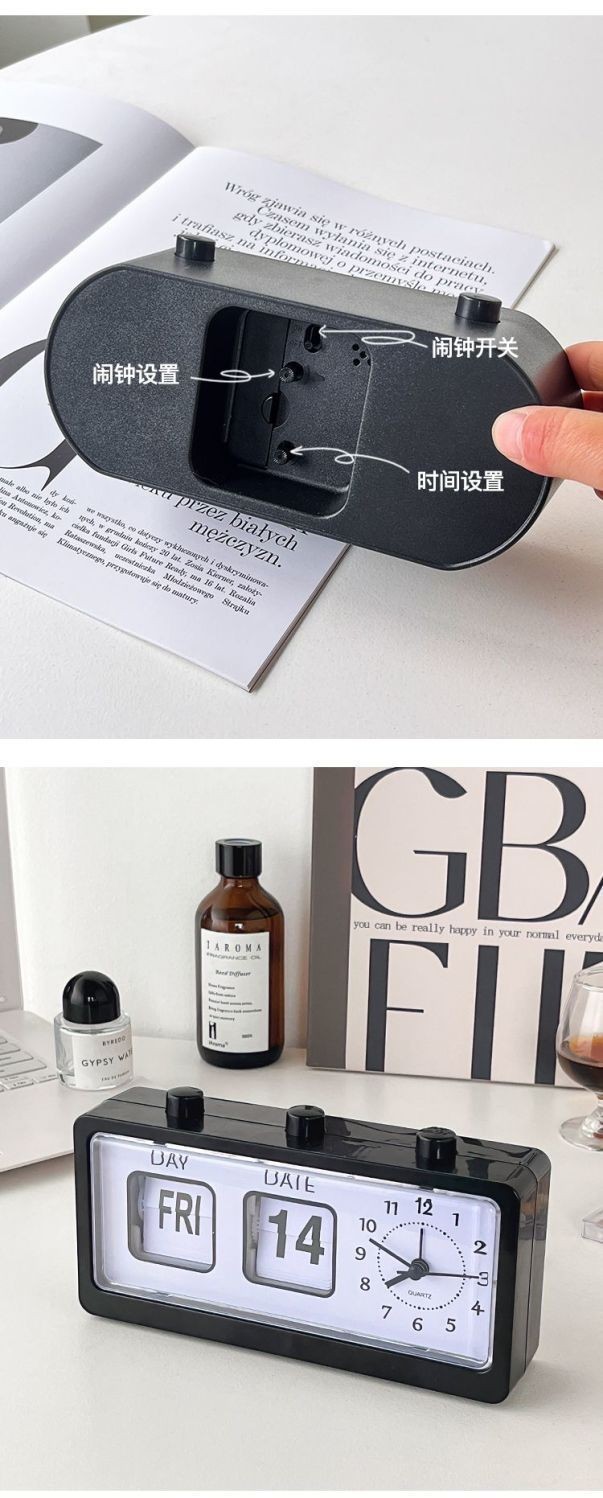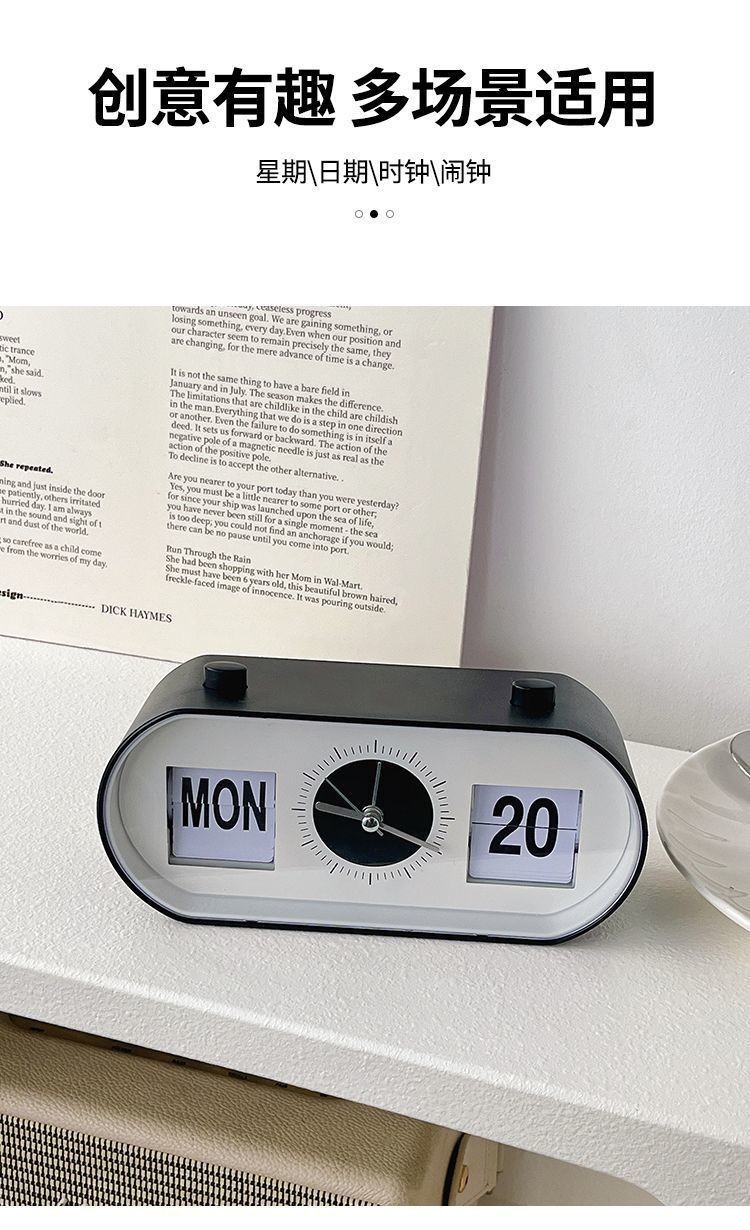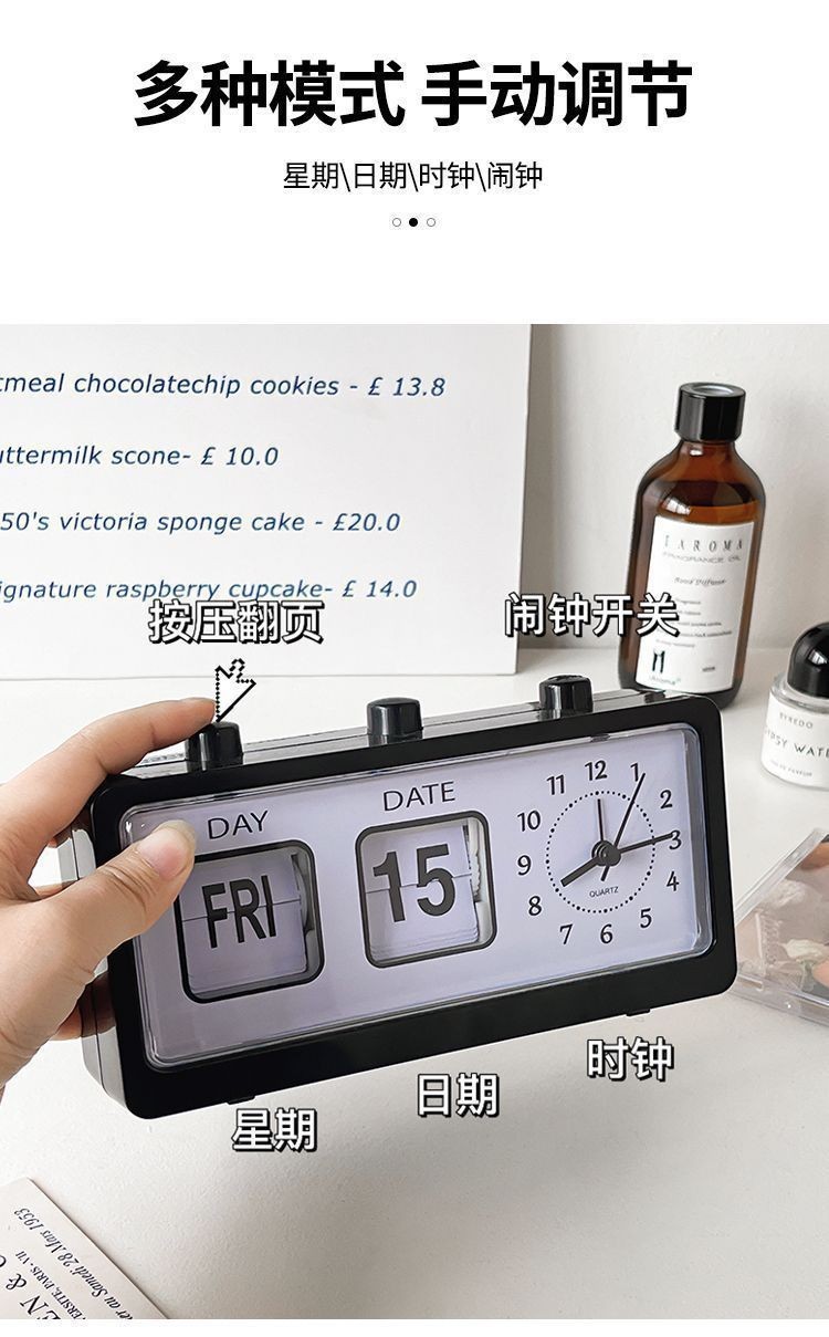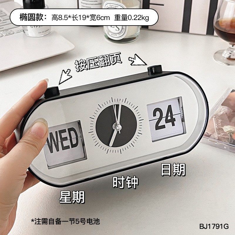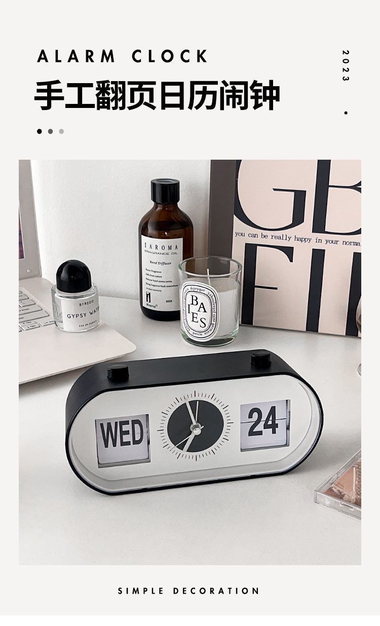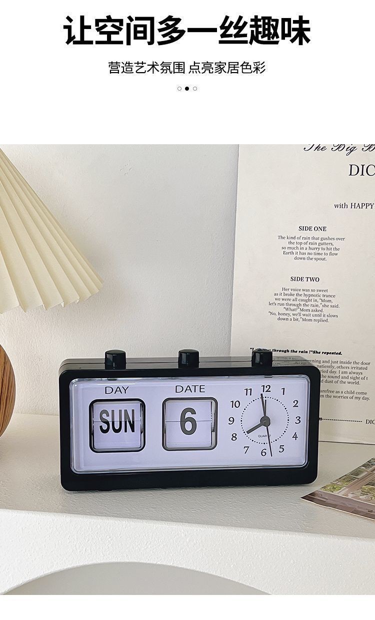 Ins 간단한 Perpetual Calendar Pendulum 데스크탑 전자 시계 거실 매뉴얼 페이지 플립 캘린더 데스크 시계 데스크탑 알람 시계 장식품스토어 가기