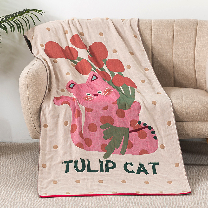 • 튤립 핑크 고양이 순면 목욕 타올
