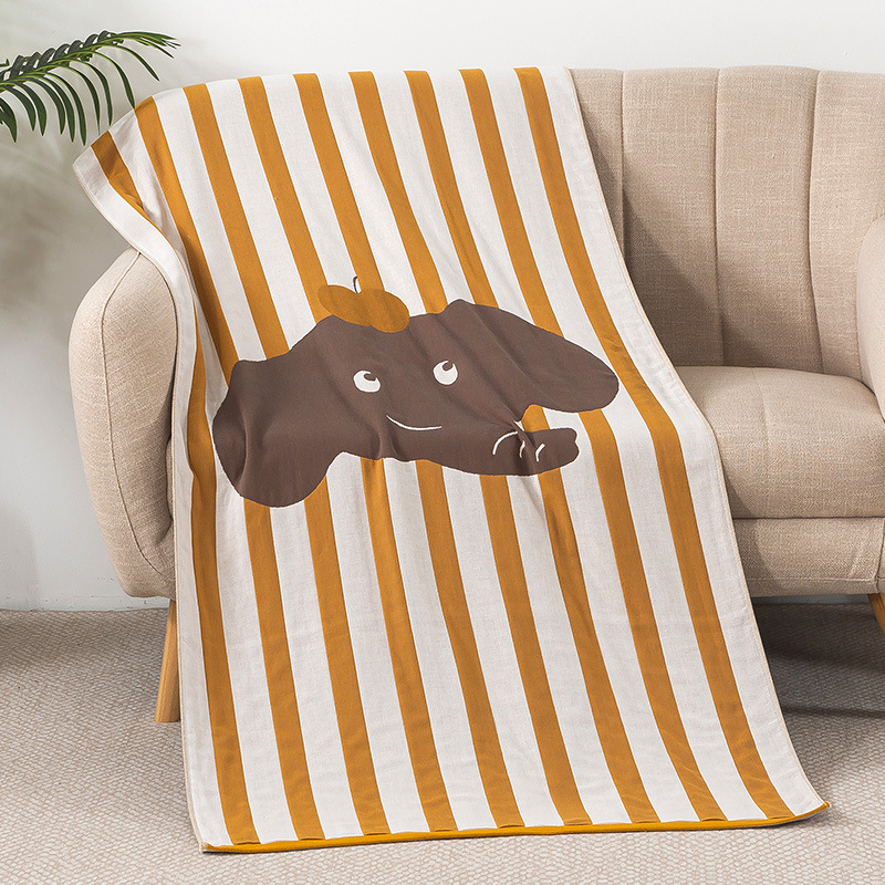 • 세로 줄무늬 아기 코끼리 노란색 면 목욕 타월