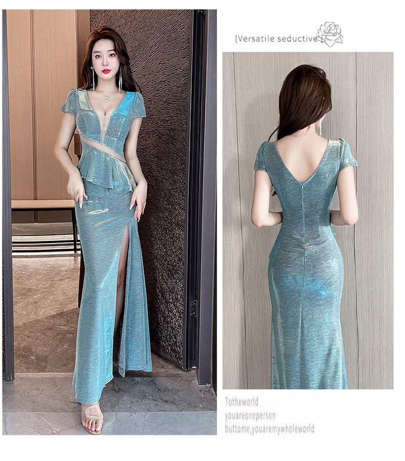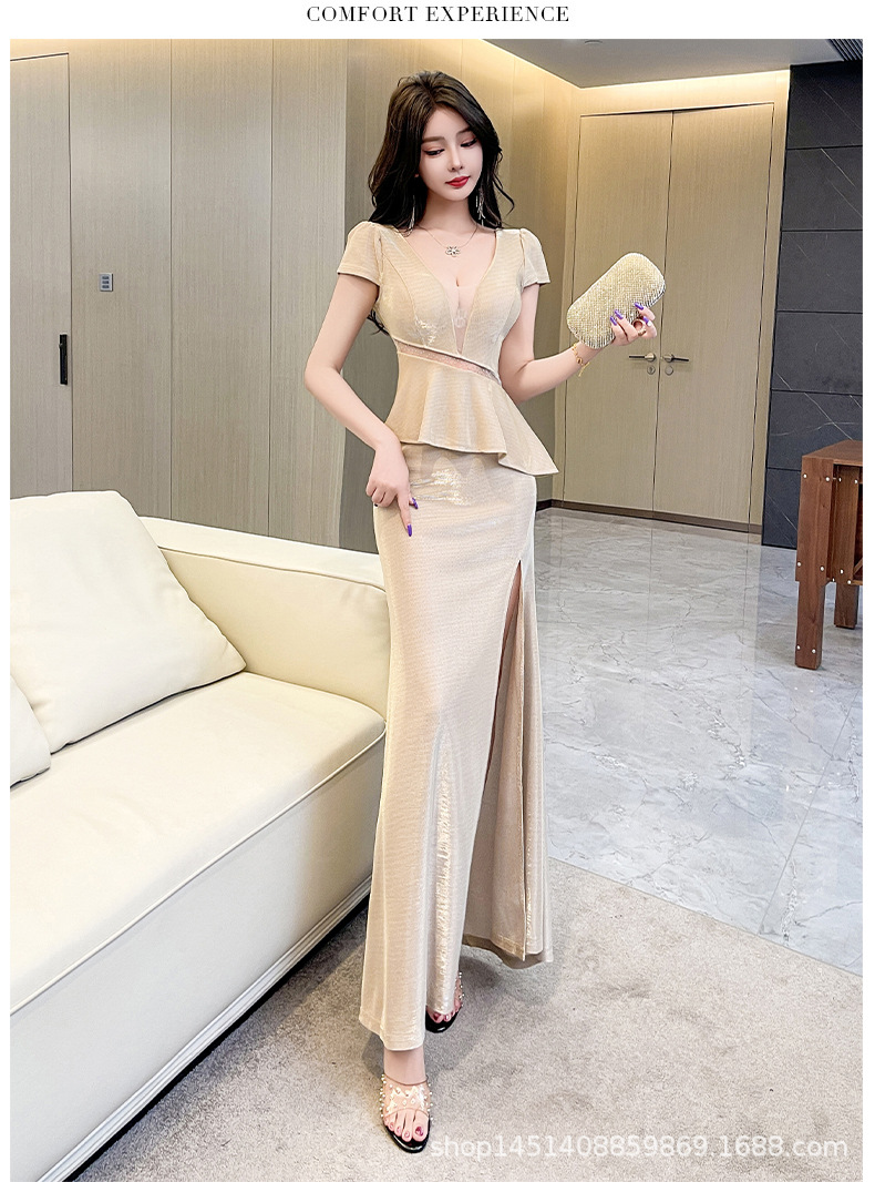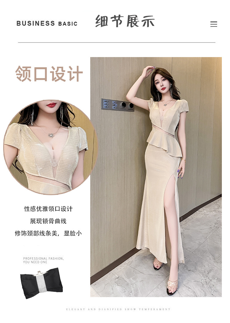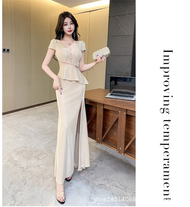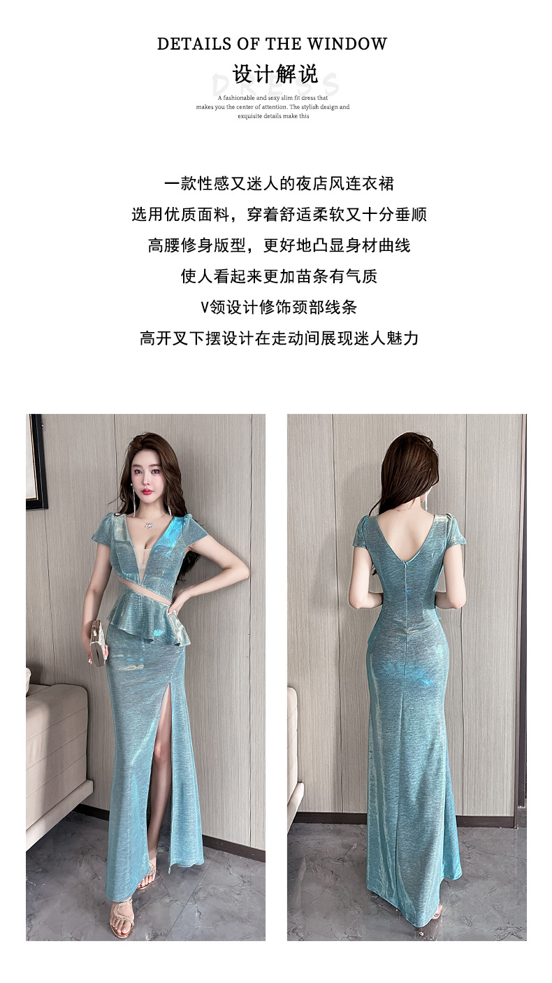 나이트 헤드 샵 섹시한 원피스 딥 V 로우 컷 타이트한 저녁 원피스 여성 바 KTV 야간 작업 옷스토어 가기