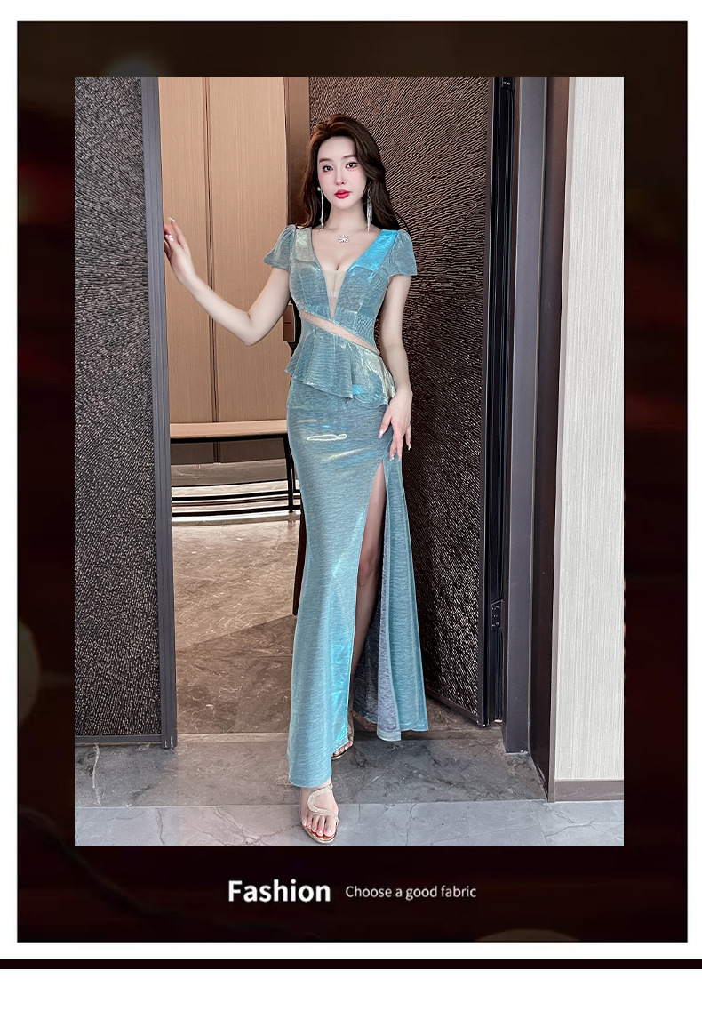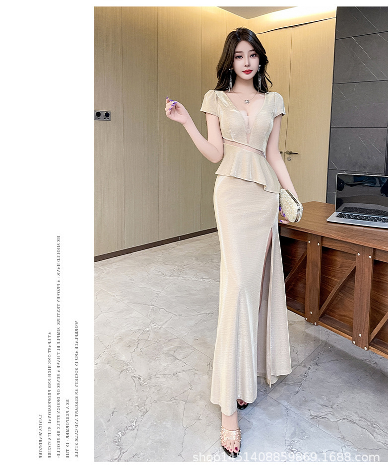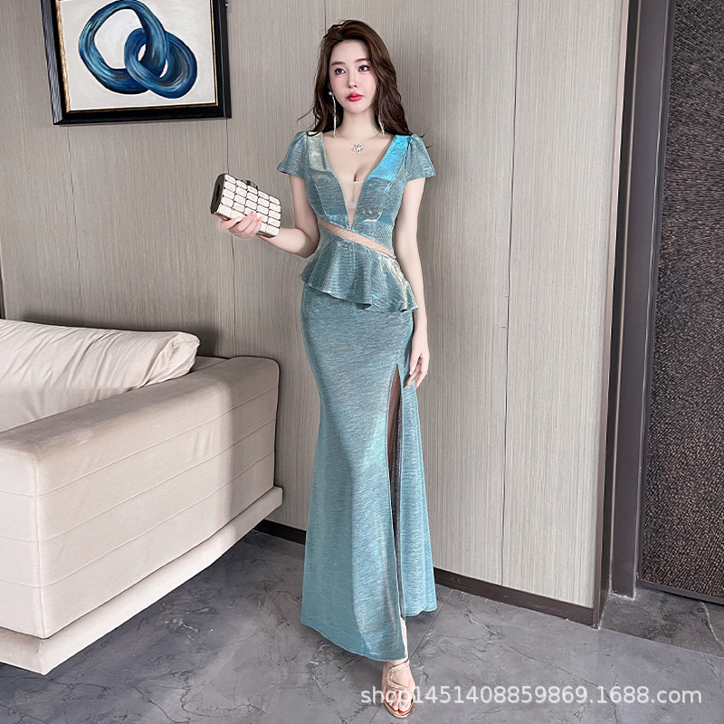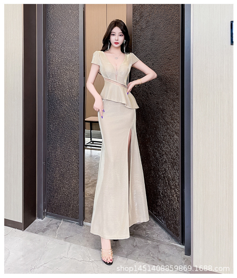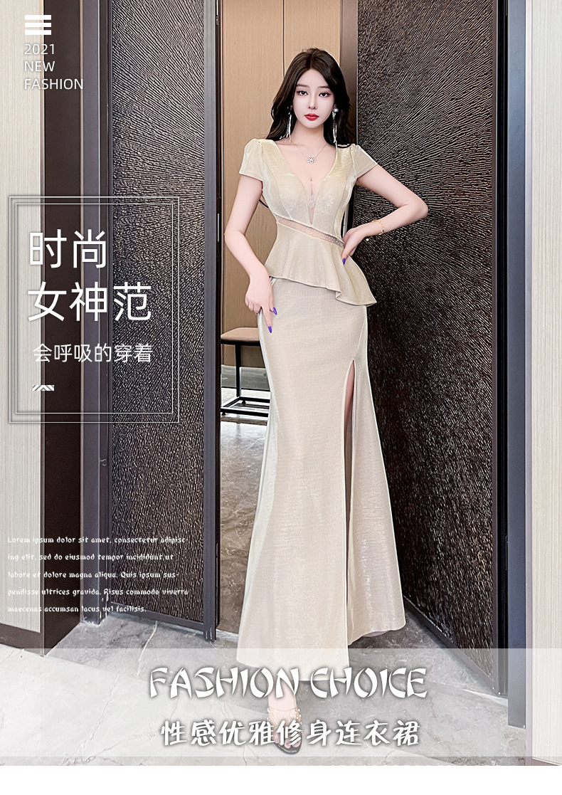 나이트 헤드 샵 섹시한 원피스 딥 V 로우 컷 타이트한 저녁 원피스 여성 바 KTV 야간 작업 옷스토어 가기