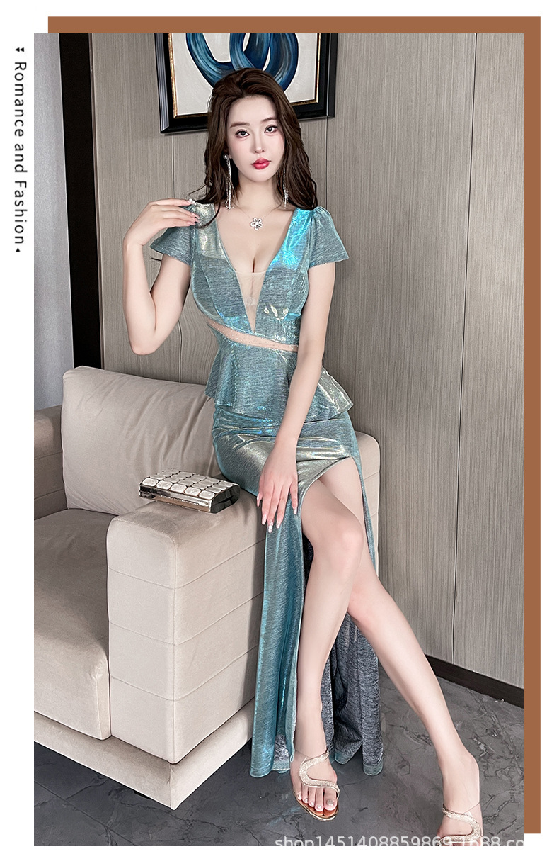나이트 헤드 샵 섹시한 원피스 딥 V 로우 컷 타이트한 저녁 원피스 여성 바 KTV 야간 작업 옷