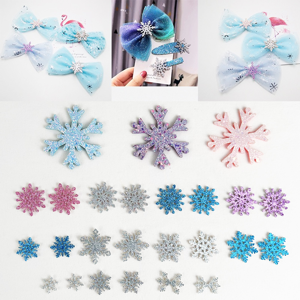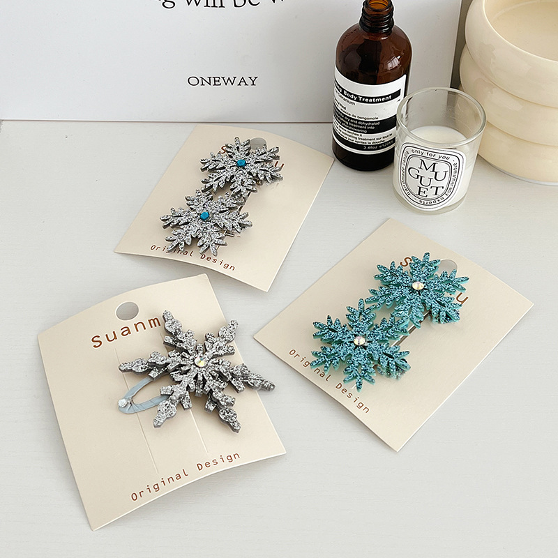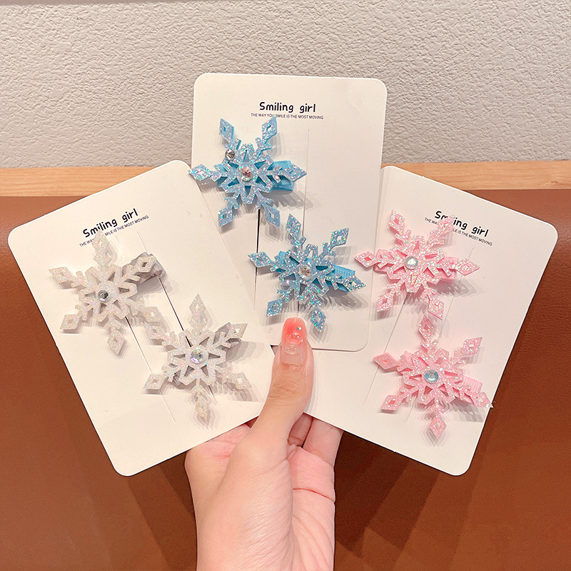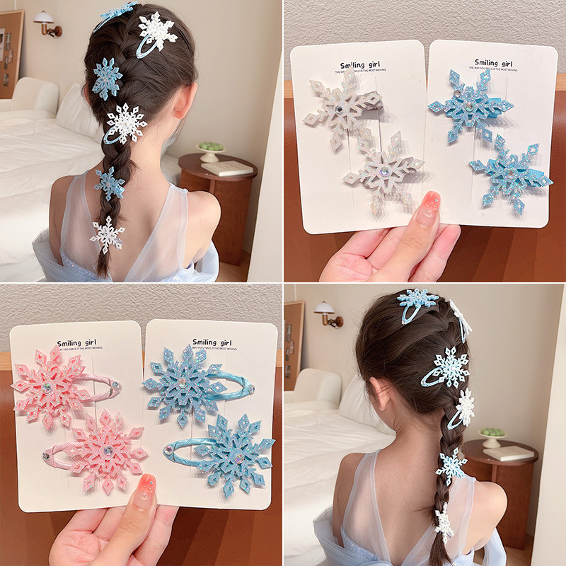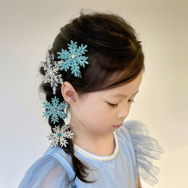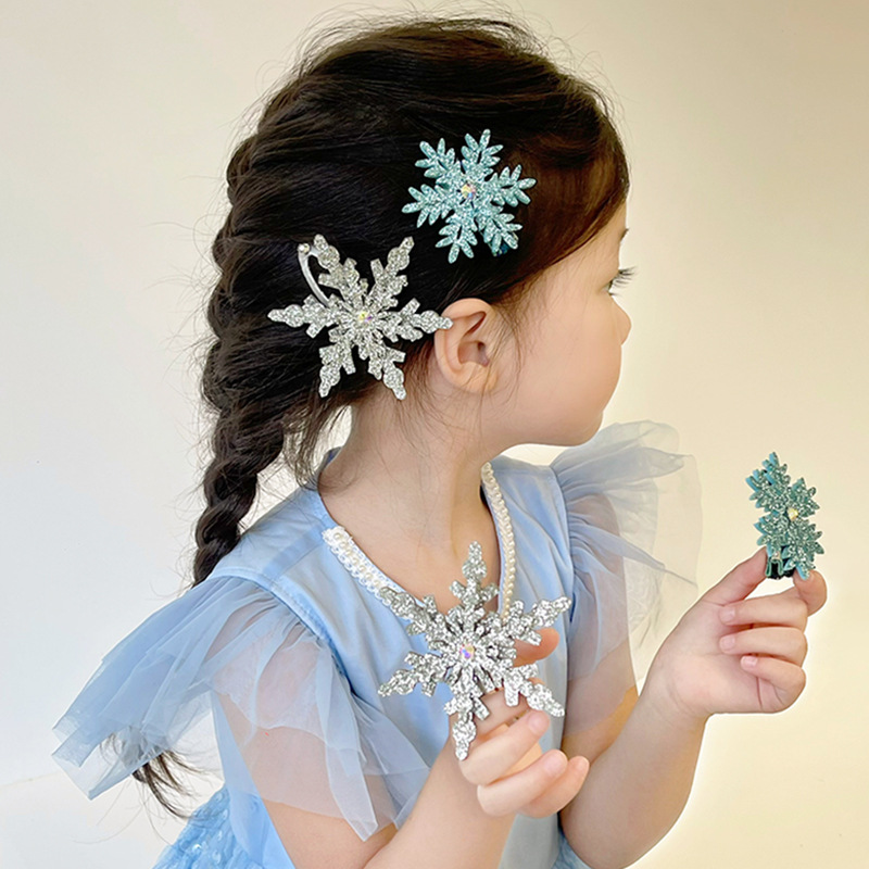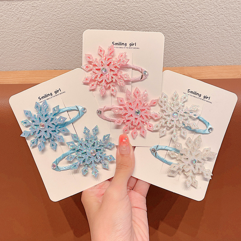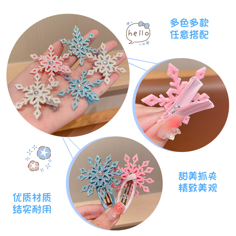 엘사 눈송이 헤어핀 새해 빛나는 작은 눈송이 헤어핀 가을과 겨울 사이드 클립 뱅이 클립 헤어핀 크리스마스 헤어 액세서리