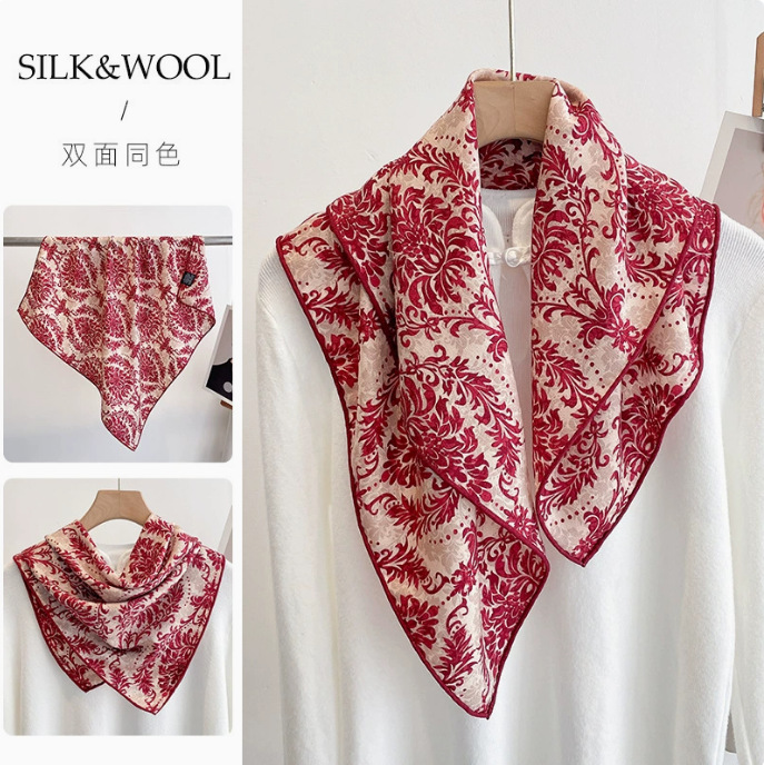 가을 질감 양면 실크 울 스카프 여성의 가을과 겨울 실크 울 70 스퀘어 스카프 따뜻한 이중 목적 여성의 올 매치 기질