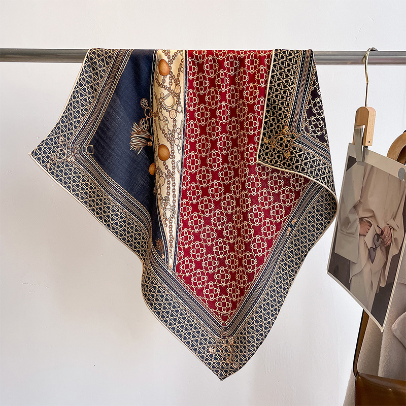 가을 질감 양면 실크 울 스카프 여성의 가을과 겨울 실크 울 70 스퀘어 스카프 따뜻한 이중 목적 여성의 올 매치 기질스토어 가기