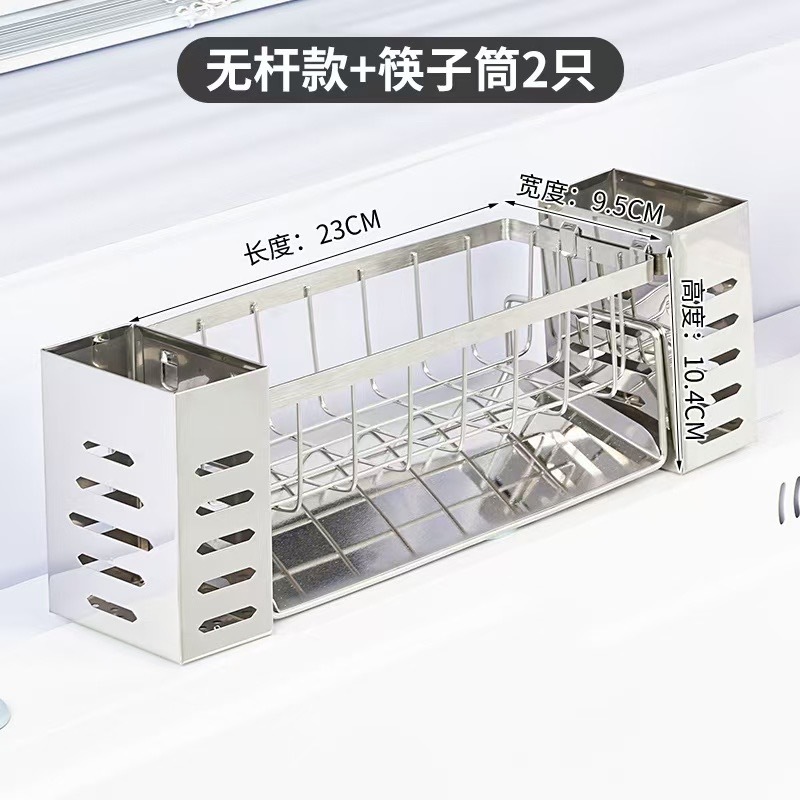 • 스테인레스 스틸 막대 없는 배수 랙 + 젓가락 꽂이 2개