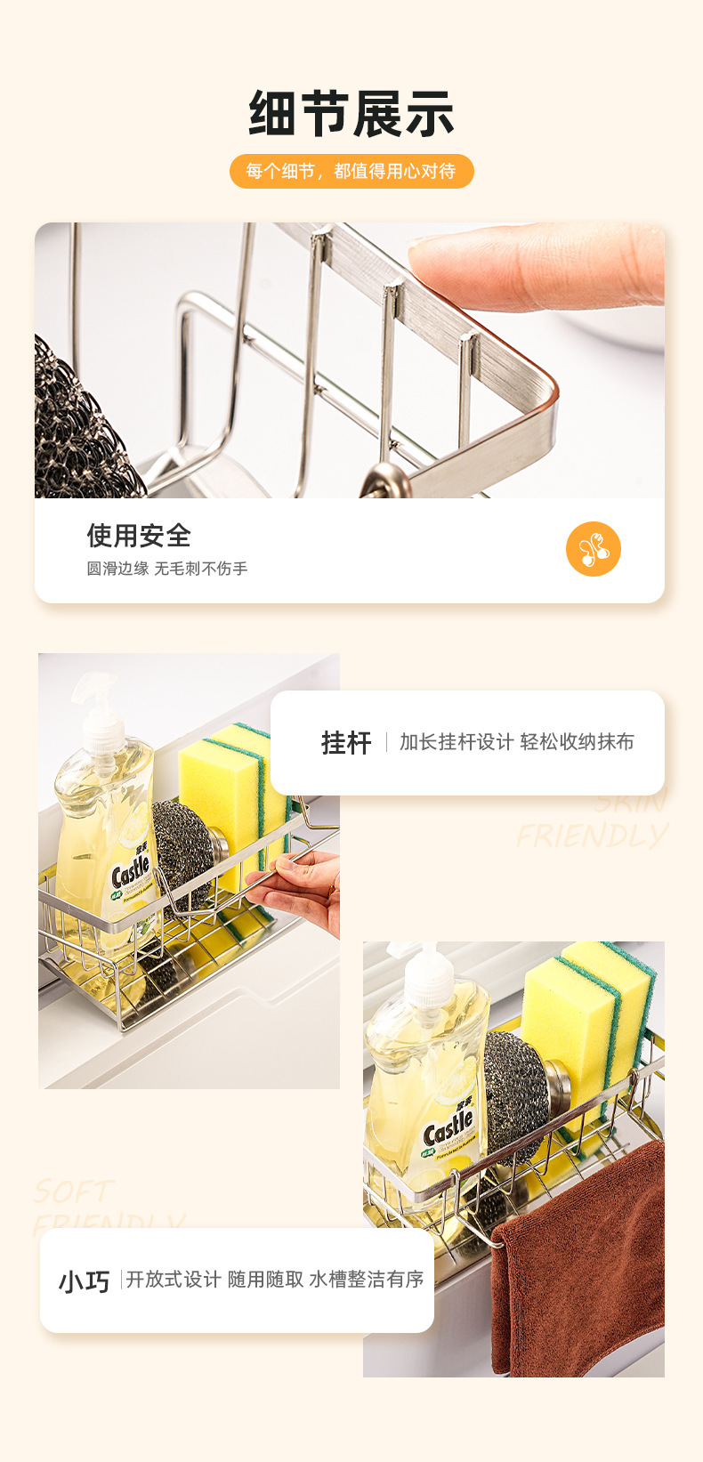 주방 싱크 스테인레스 스틸 스토리지 랙 접시 천 드레인 랙 싱크 식기 세척 Degummy 스토리지 랙 아티팩트 스폰지 랙