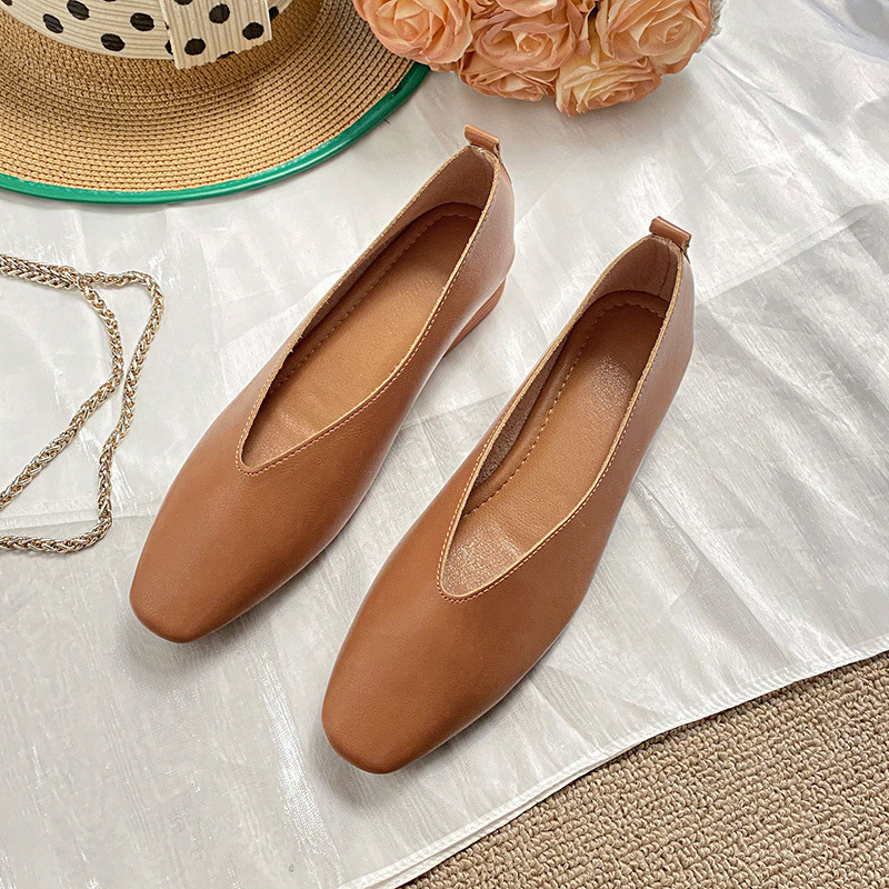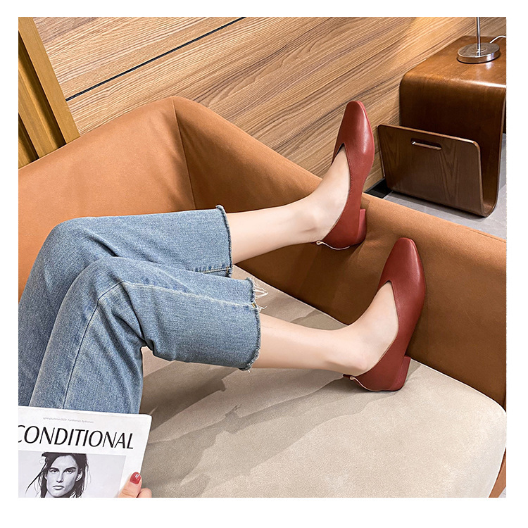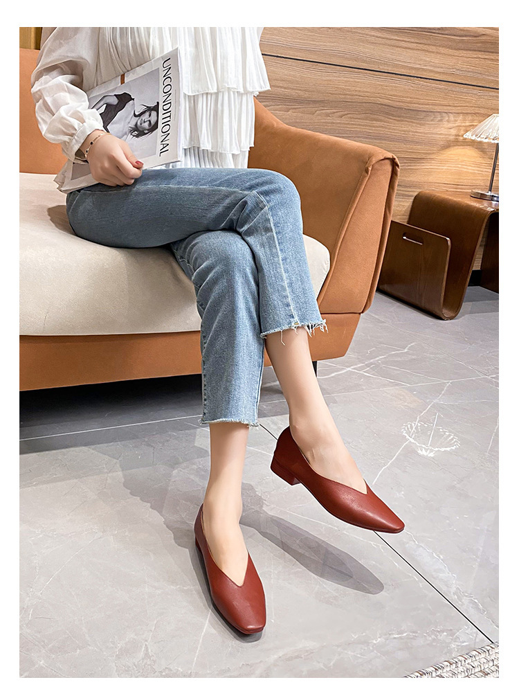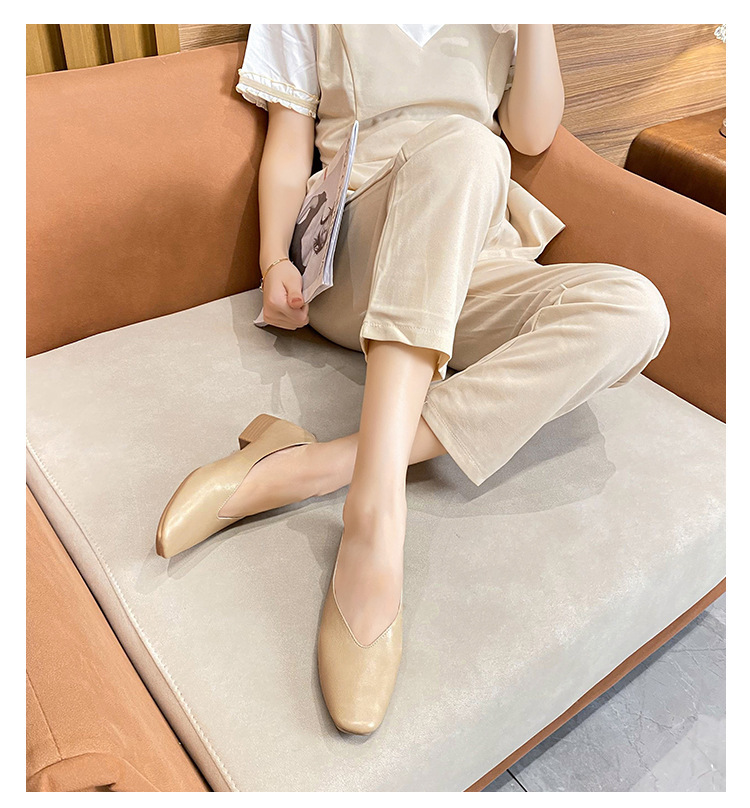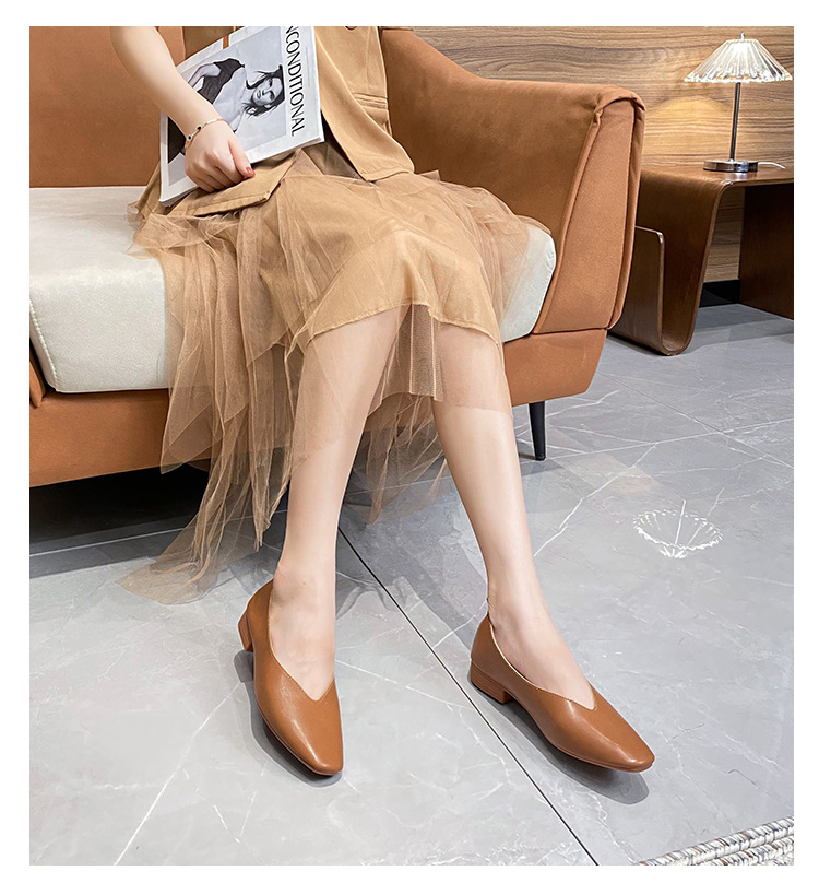부드러운 밑창 2025 새로운 스타일 소가죽 편안하고 통기성이 좋은 여성용 로우 힐 스퀘어 토 펌프스 슈즈, 플랫 밑창, 발이 아프지 않은 할머니 신발스토어 가기