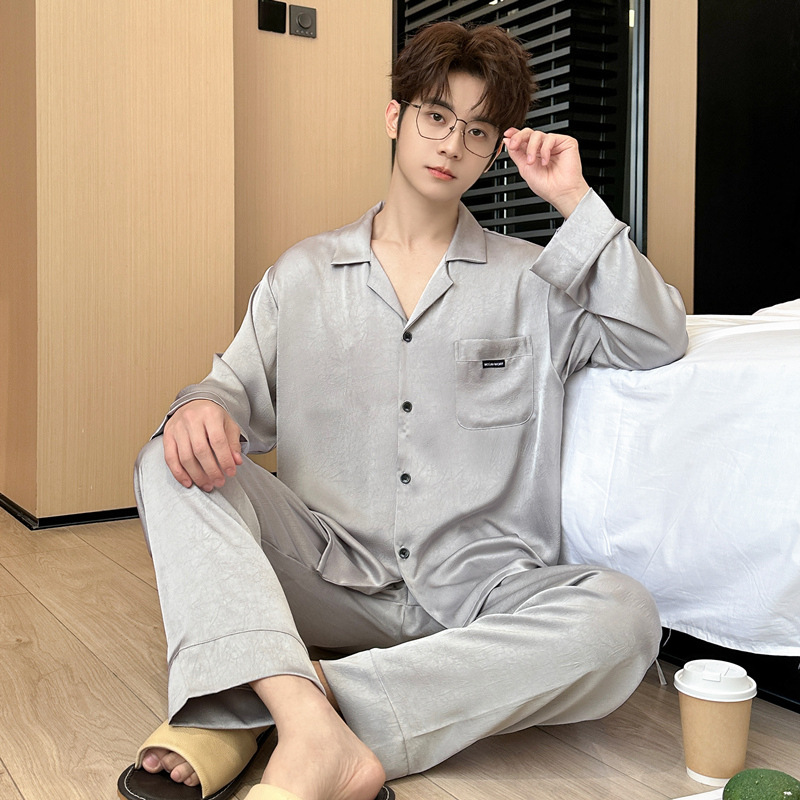 모조 아세트산 커플 잠옷 여성의 가을과 겨울 얇은 긴 소매 바지 인터넷 인기 세트 플러스 사이즈 남성용 홈 옷스토어 가기