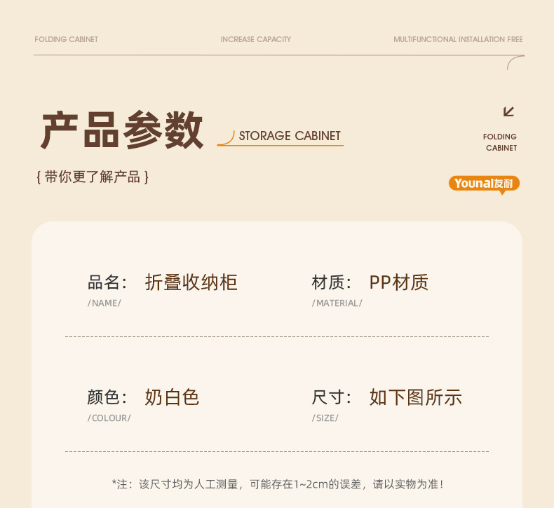 Yonai 스토리지 랙 가정용 아기 어린이 스토리지 캐비닛 옷 장난감 피팅 캐비닛 무료 설치 접이식 스토리지 캐비닛