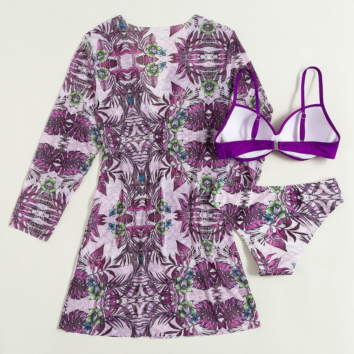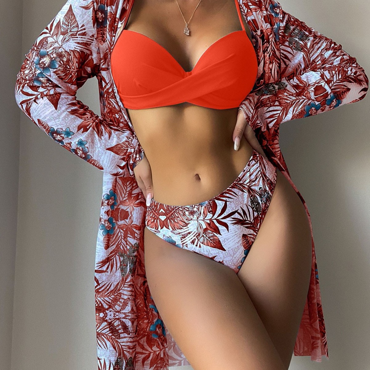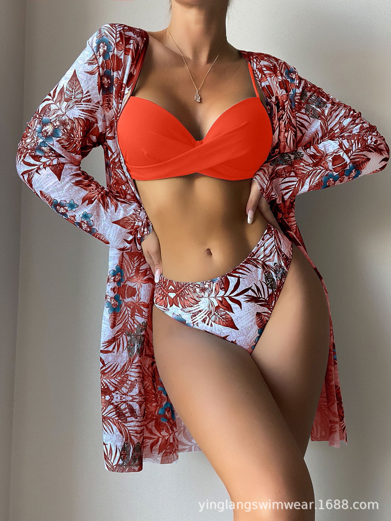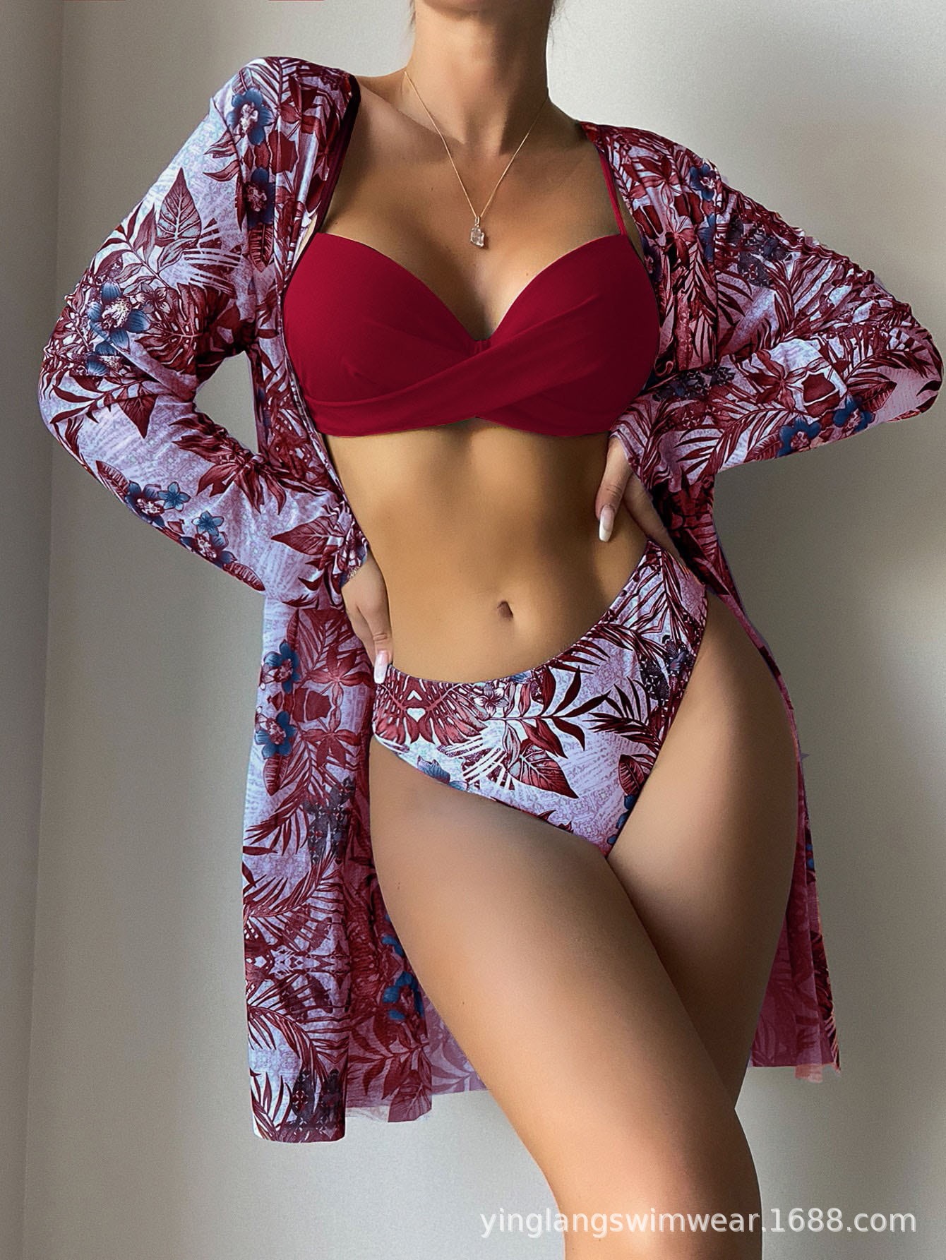 2025 새로운 유럽과 미국의 수영복 여성 프론트 트위스트 수영복 크로스 보더 메쉬 3 피스 대외 무역 비키니 블라우스 재킷