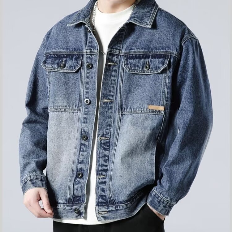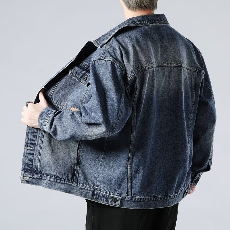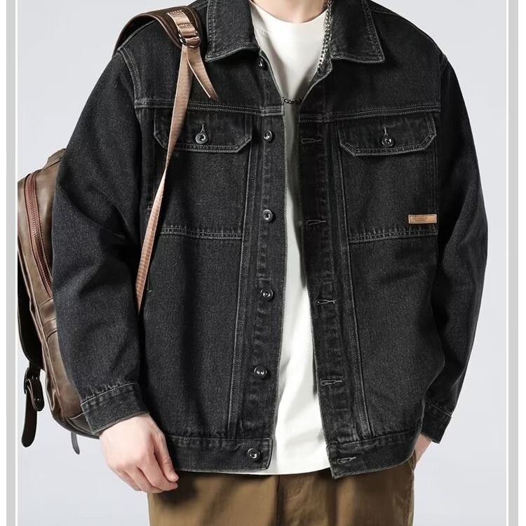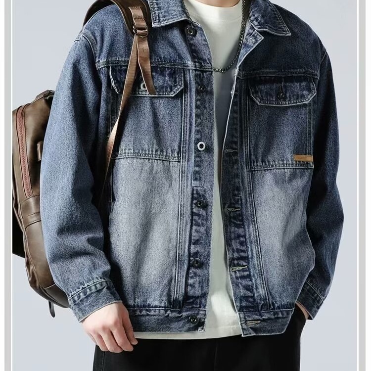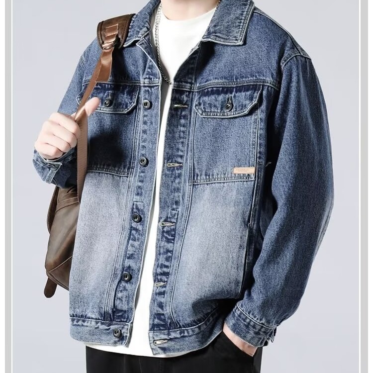 틈새 디자인 센스 데님 재킷 코트 2024 십대와 소년을위한 긴 소매 엘 카디건 데님 코트스토어 가기