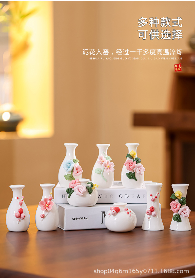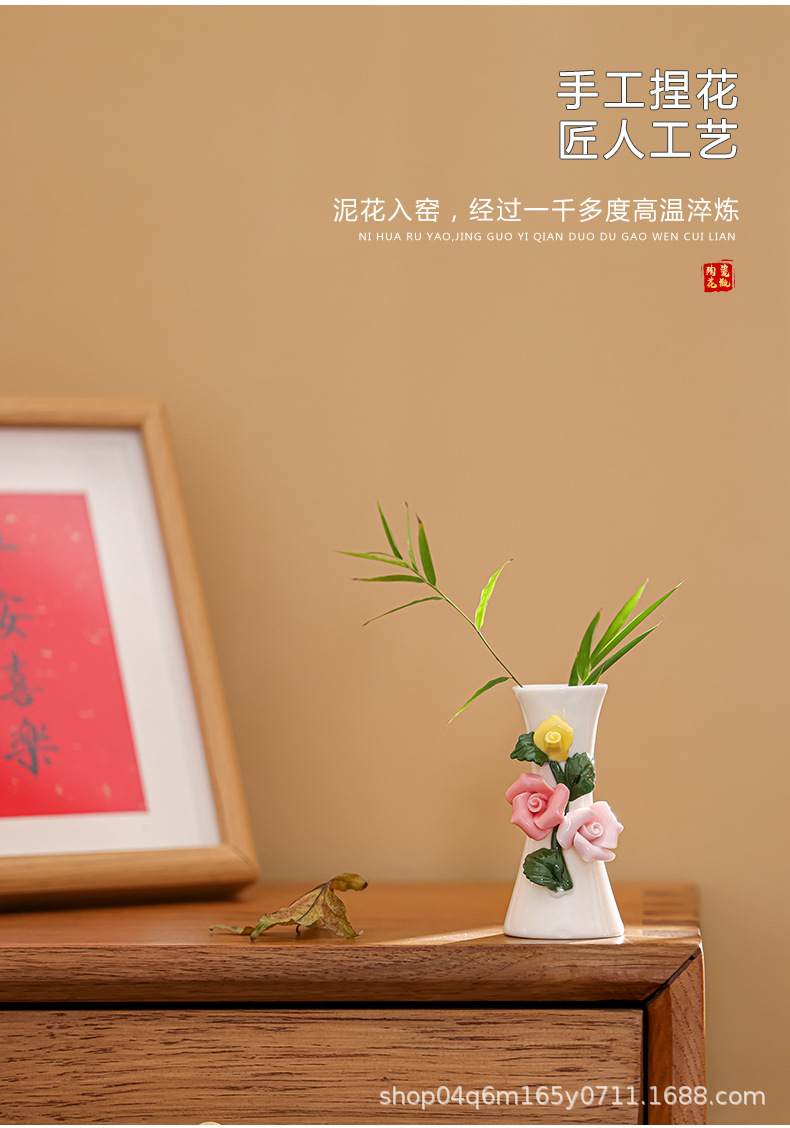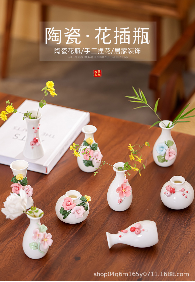 가벼운 럭셔리 데스크탑 세라믹 손 반죽 꽃병 장식품 수경 꽃 장식품 홈 말린 꽃 스몰 사이즈 거실 용 장식품