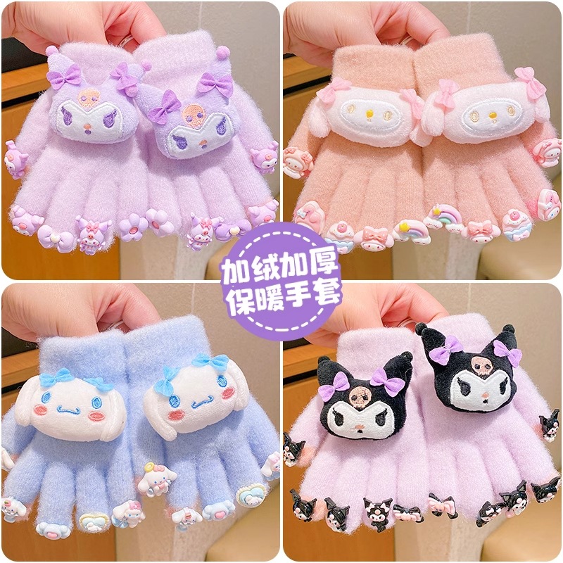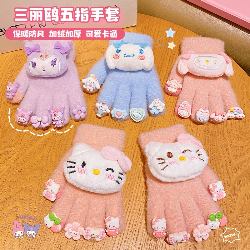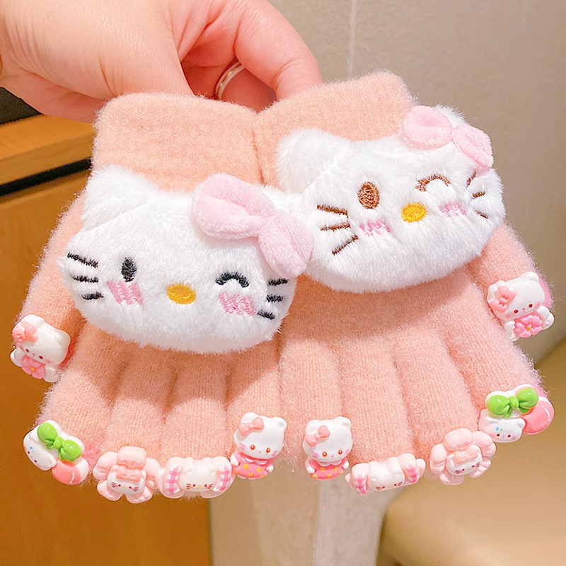 겨울 어린이 봉제 장갑 만화 달콤한 3 차원 인형 기모 두꺼운 기모 방풍 방한 손가락 장갑