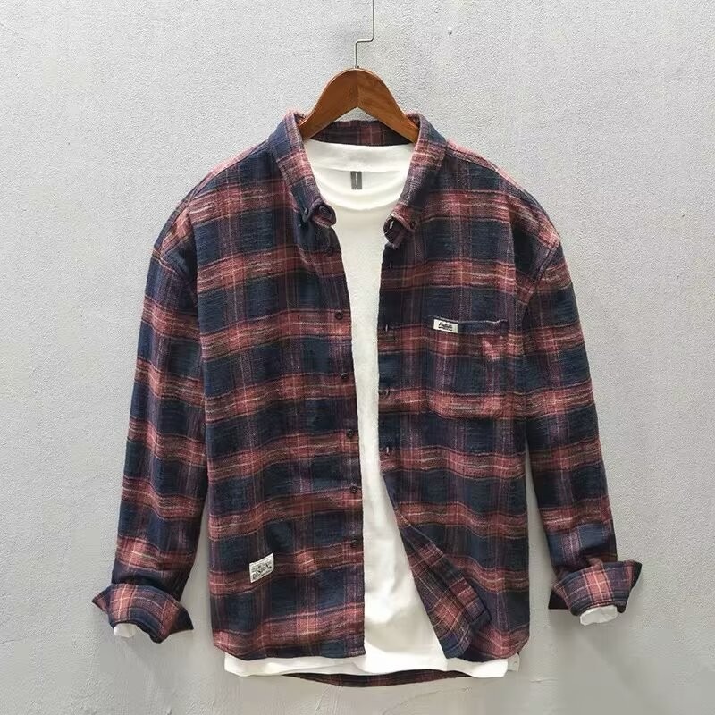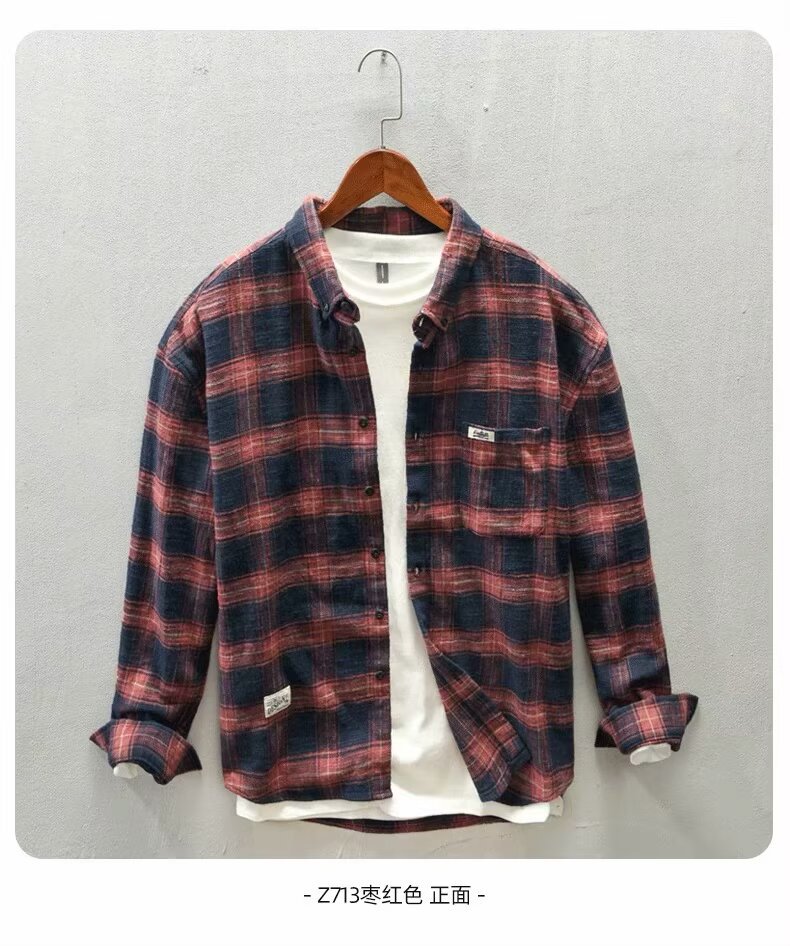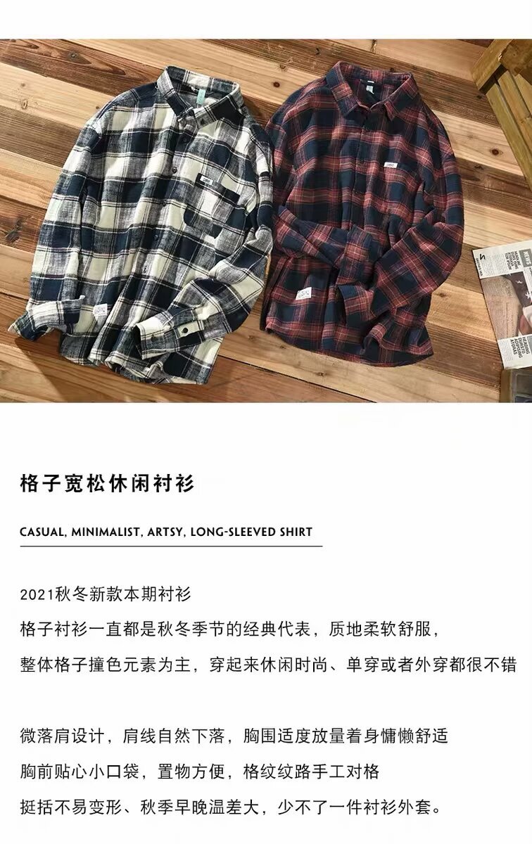 체크 무늬 셔츠 남자 봄과 가을 일본 아메리칸 스타일 레트로 클래식 올 매치 긴팔 느슨한 셔츠 코트 가을스토어 가기