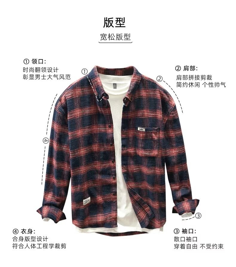 체크 무늬 셔츠 남자 봄과 가을 일본 아메리칸 스타일 레트로 클래식 올 매치 긴팔 느슨한 셔츠 코트 가을