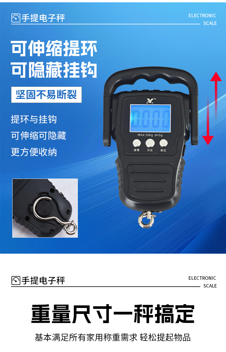 재고 새로운 50kg 휴대용 휴대용 스케일 가정용 전자 스케일 후크 테이크 아웃 스케일 식료품 쇼핑 후크 스케일