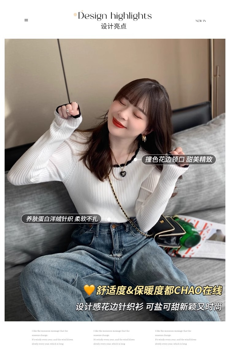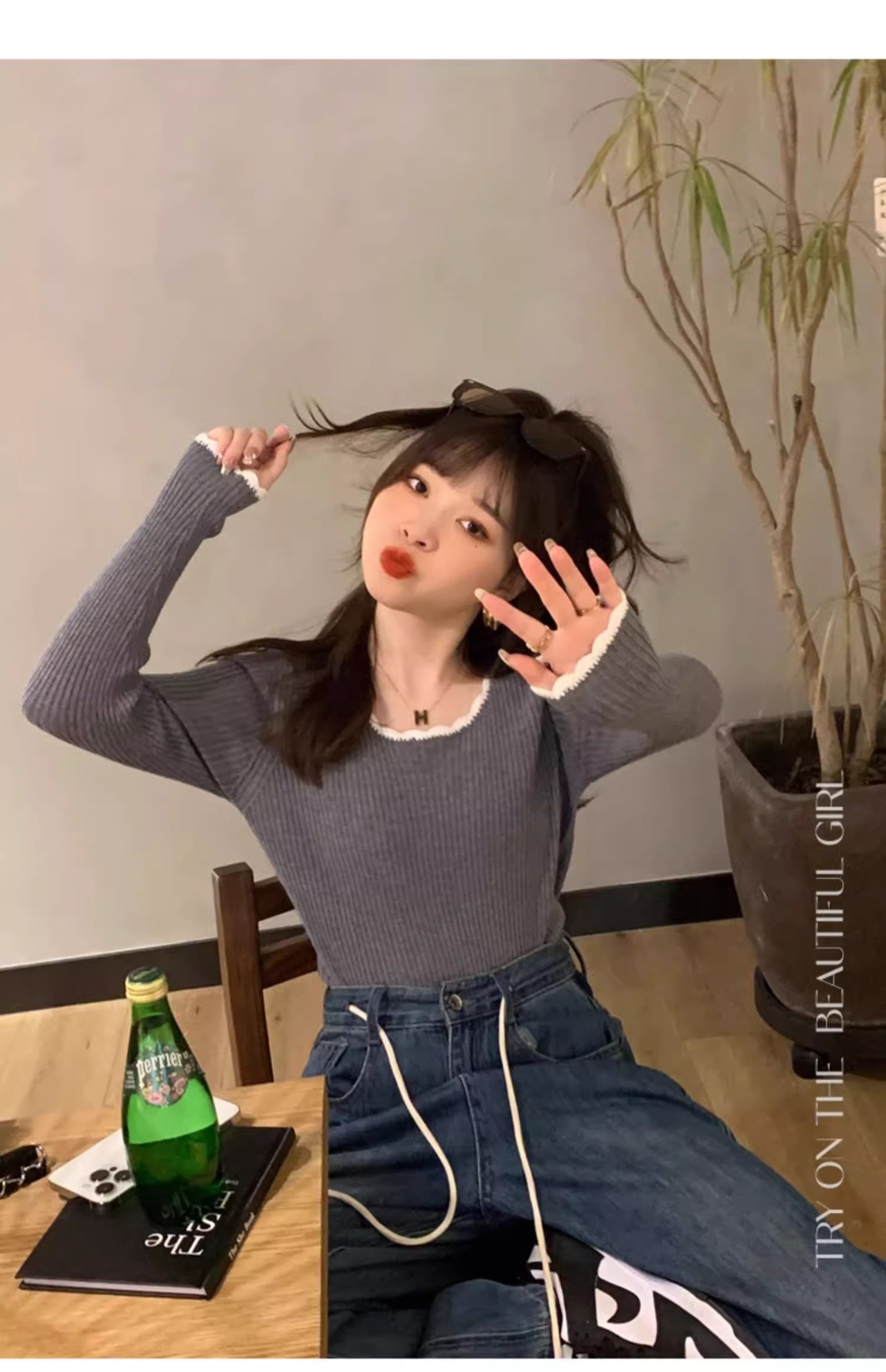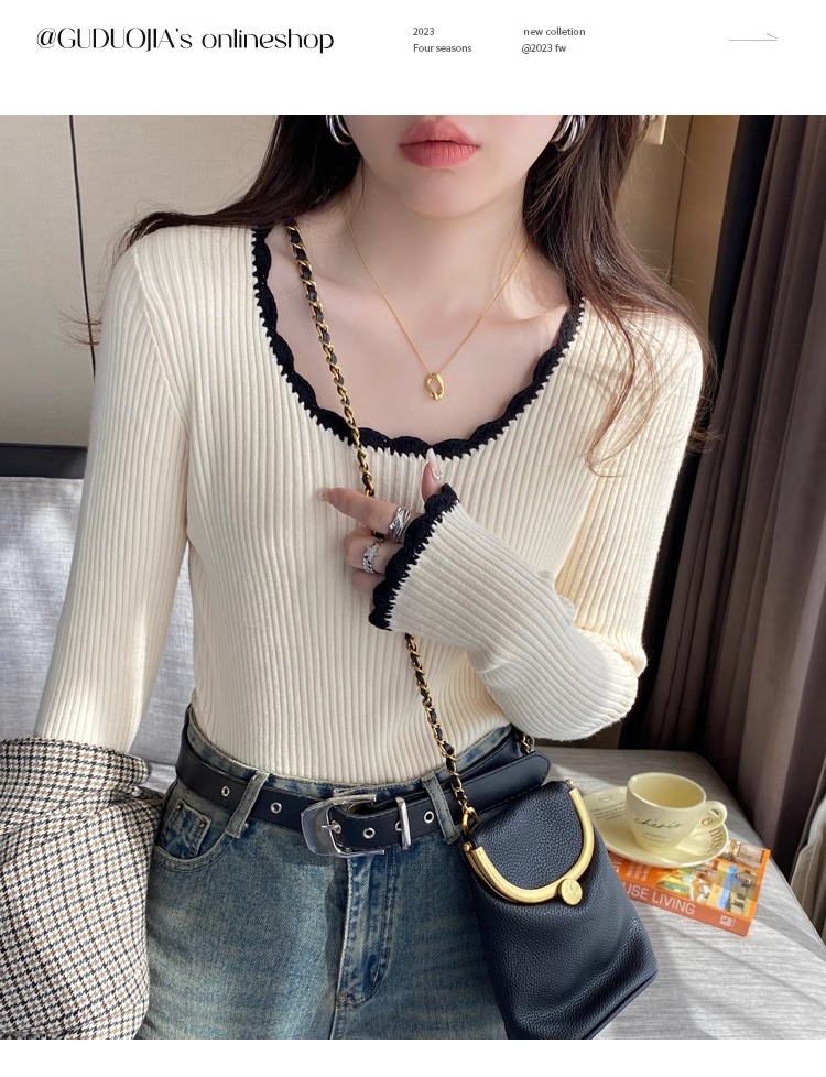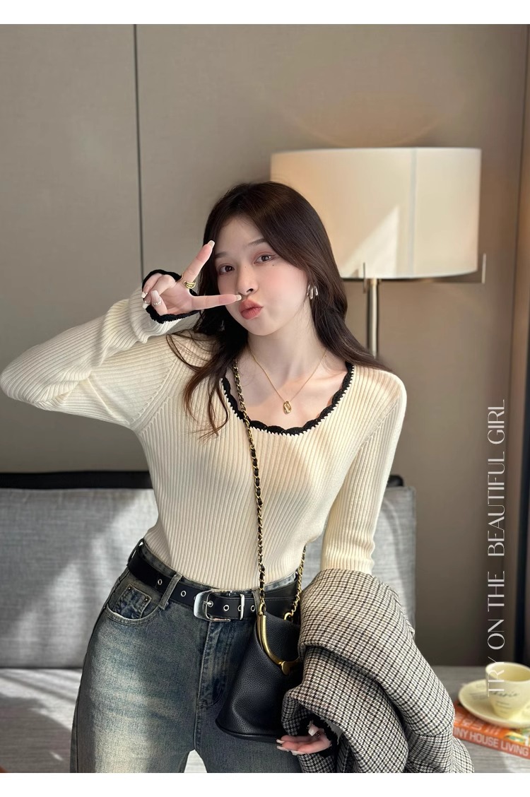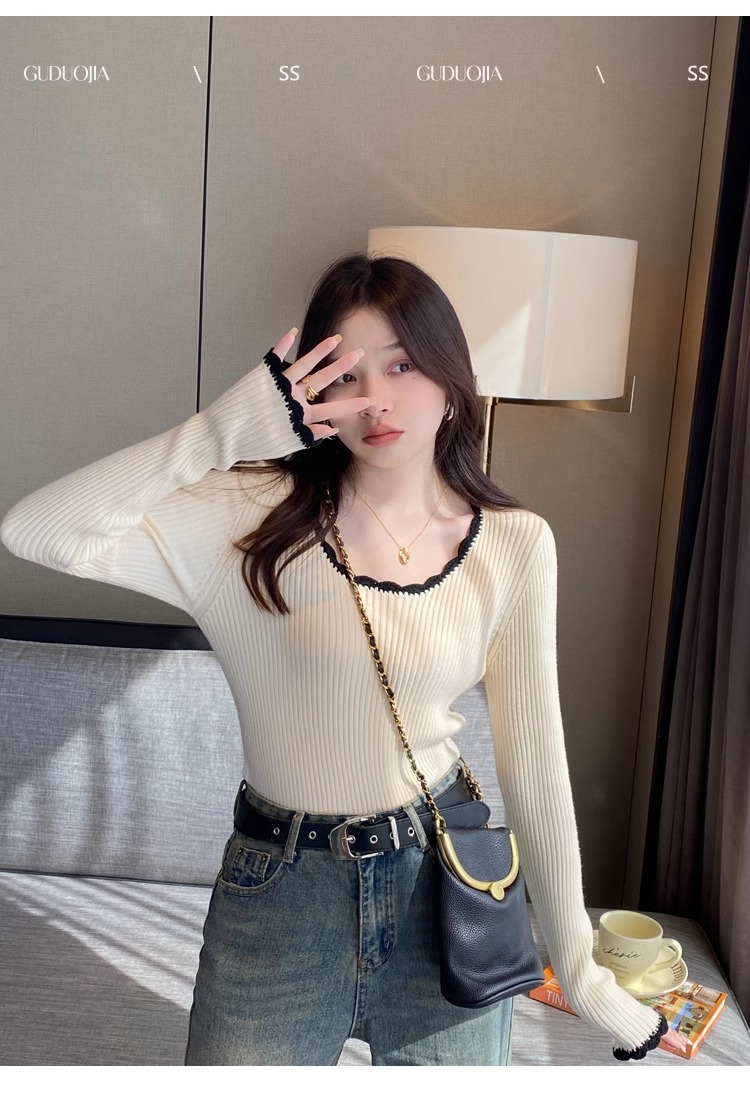 낮은 칼라 매칭 코트 디자인 센스 니트 스웨터 탑 여성 봄과 가을 서양식 아우터웨어 슬림핏 슈퍼 룩한 이너 스웨터스토어 가기