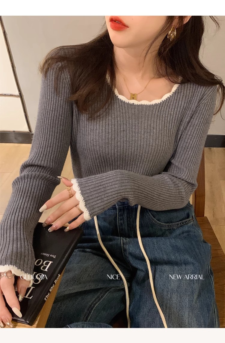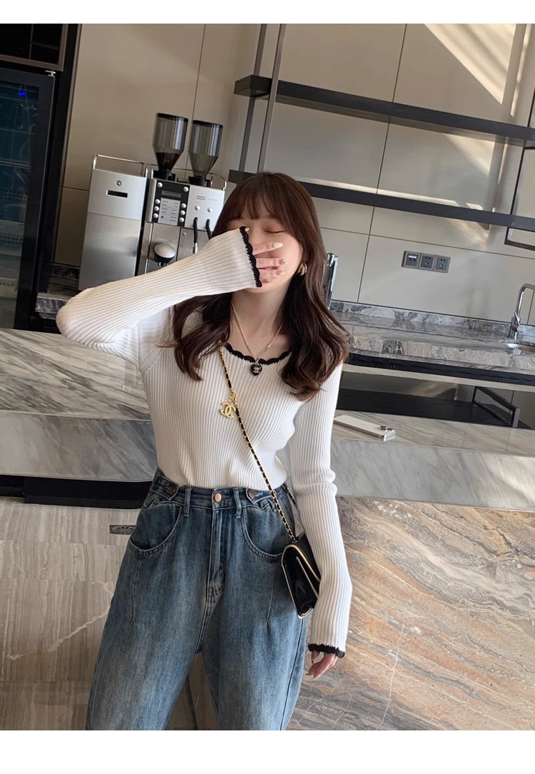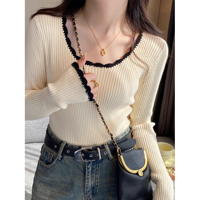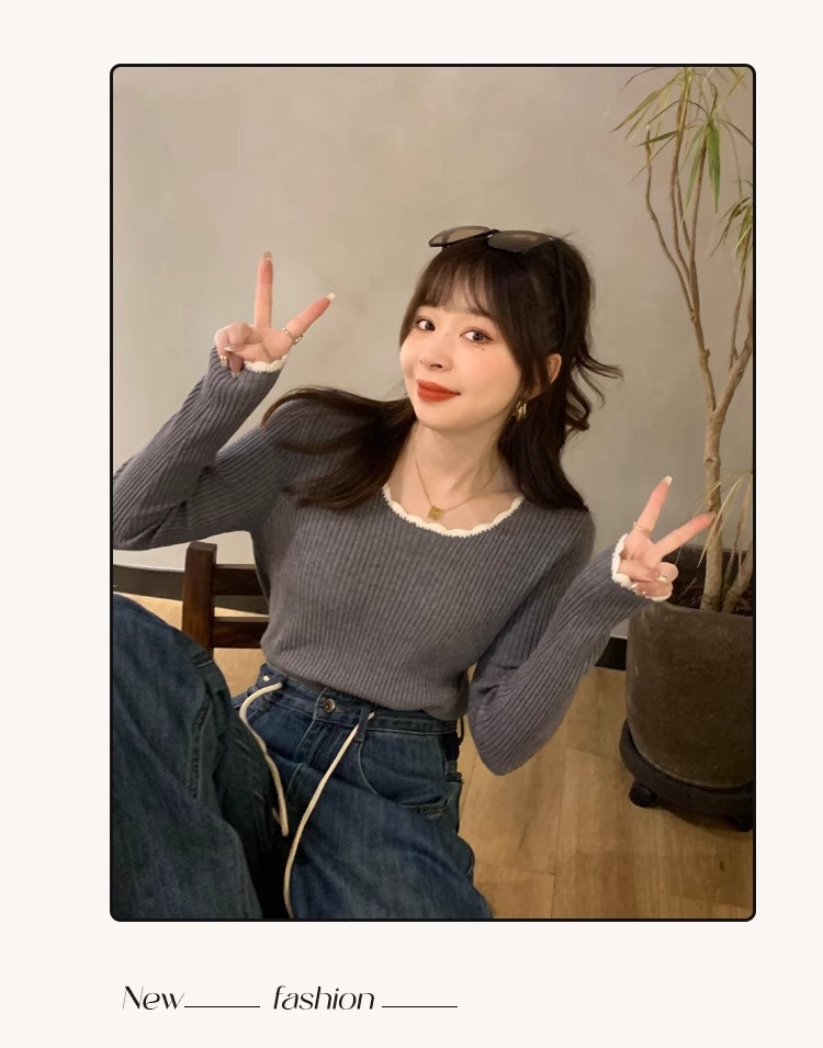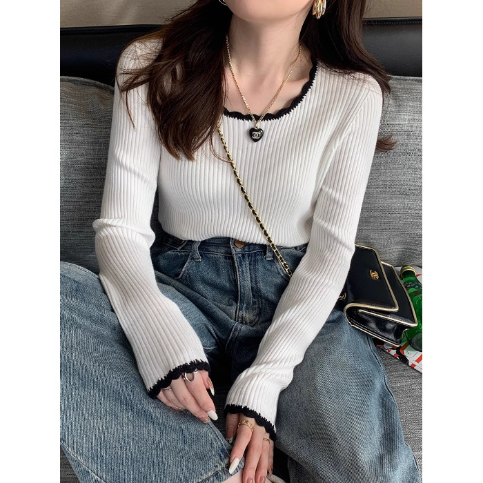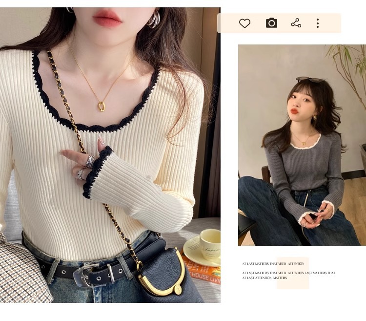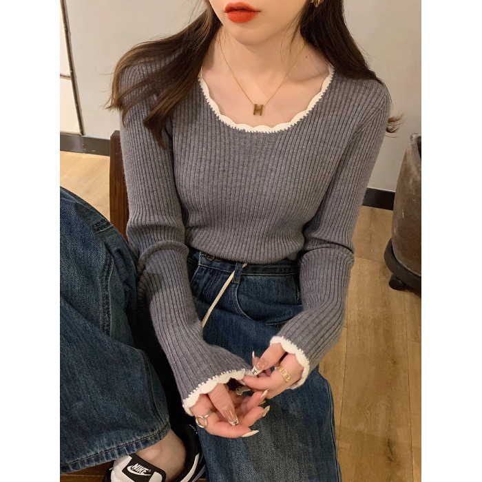 낮은 칼라 매칭 코트 디자인 센스 니트 스웨터 탑 여성 봄과 가을 서양식 아우터웨어 슬림핏 슈퍼 룩한 이너 스웨터스토어 가기