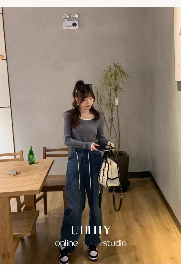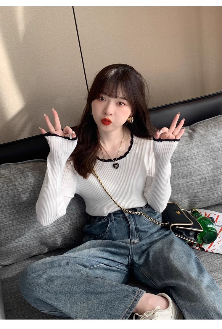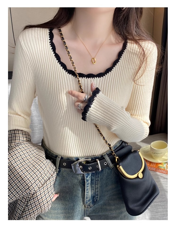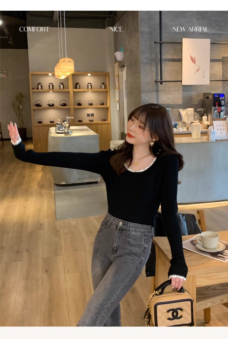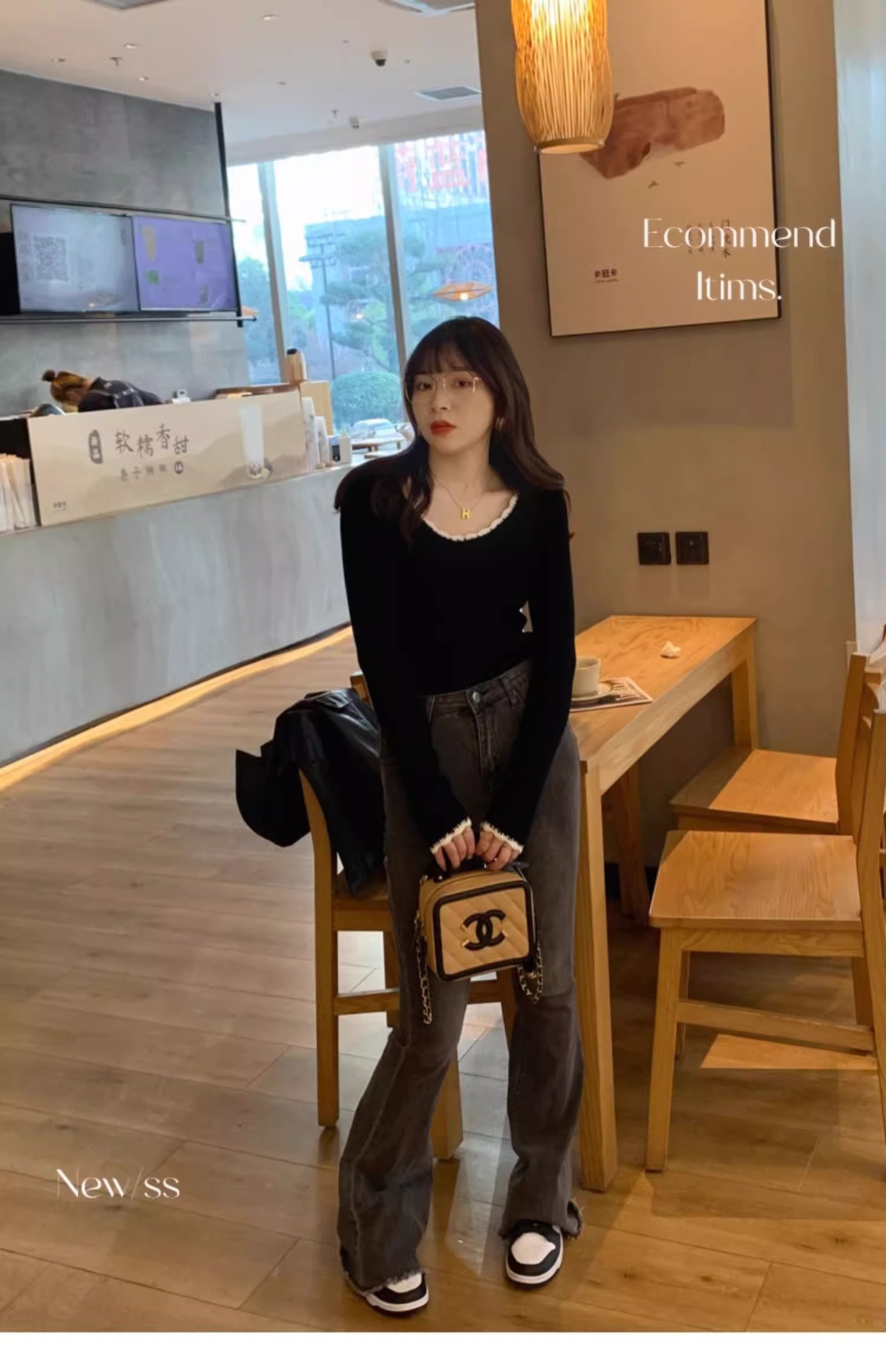 낮은 칼라 매칭 코트 디자인 센스 니트 스웨터 탑 여성 봄과 가을 서양식 아우터웨어 슬림핏 슈퍼 룩한 이너 스웨터스토어 가기