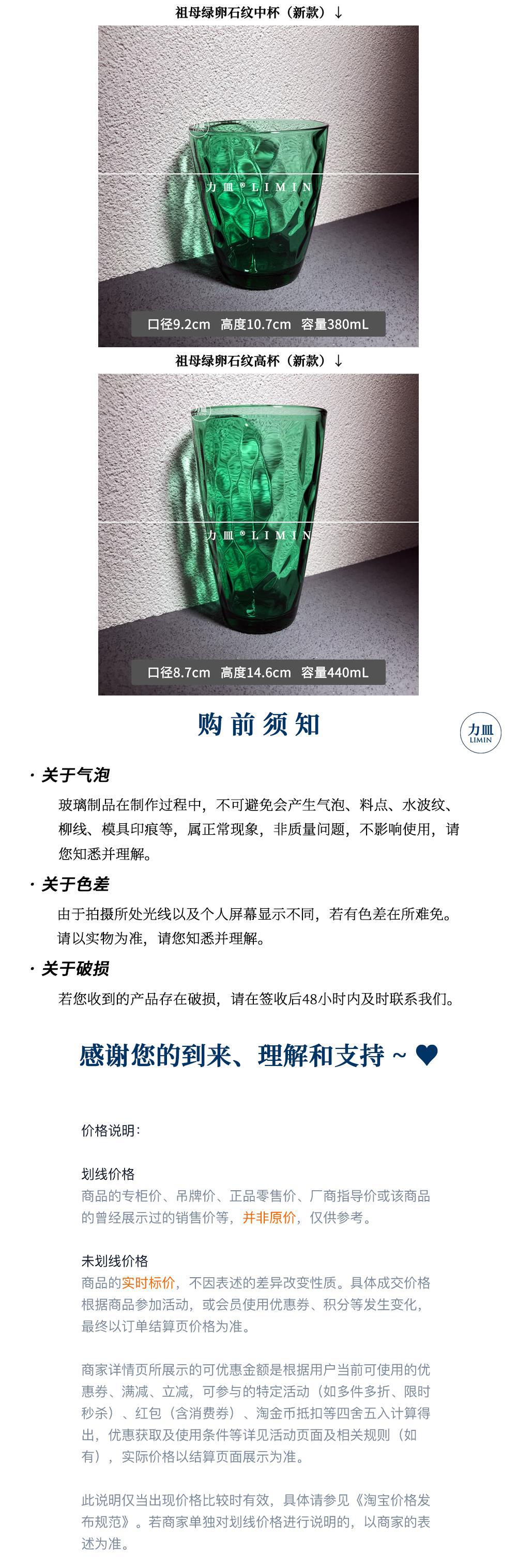 • 짙은 녹색 에메랄드 자갈 무늬 톨 컵 (새 스타일)