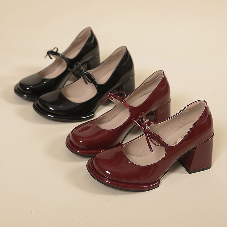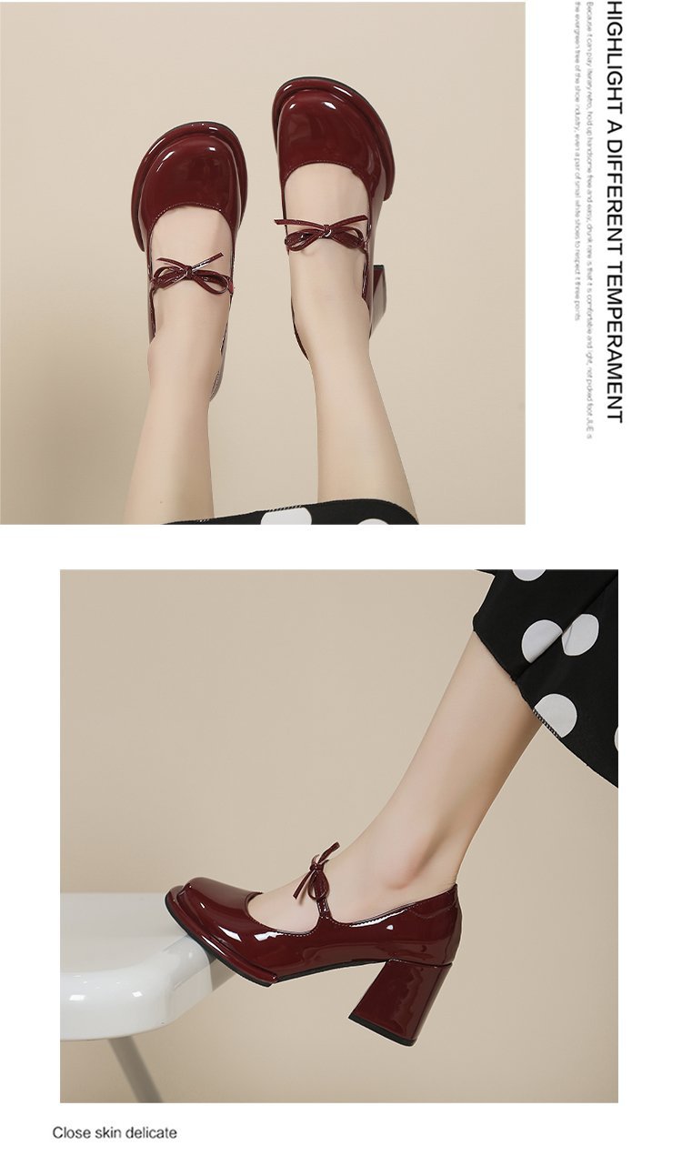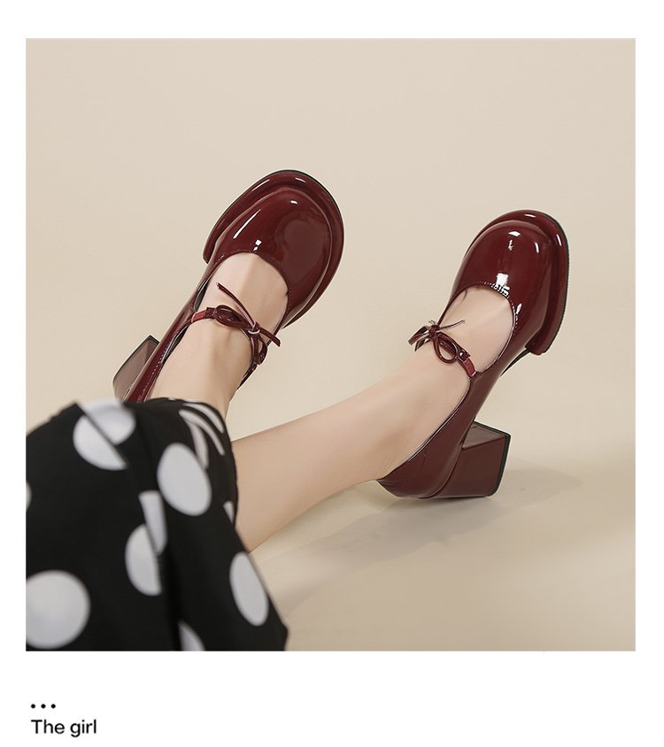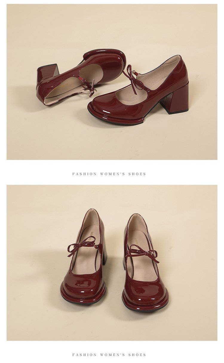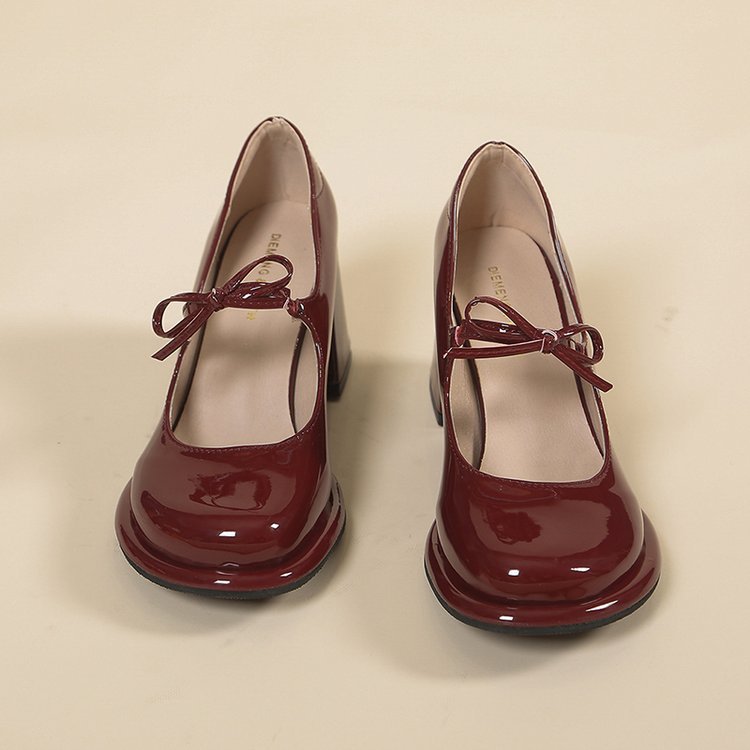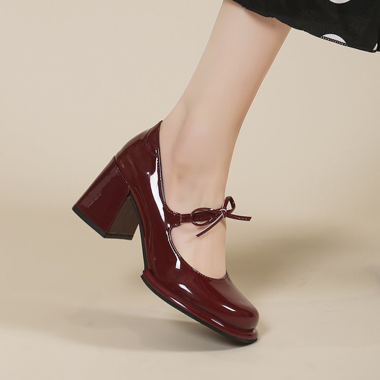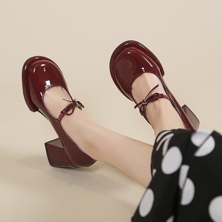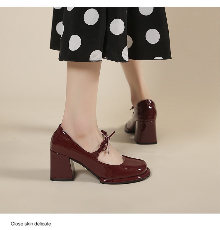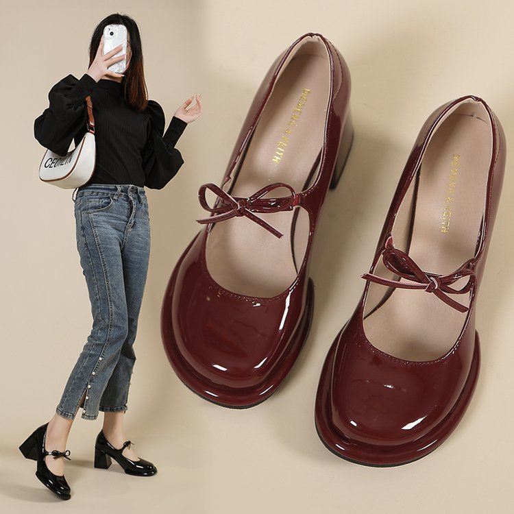 레드 레트로 하이힐 하이힐 슈즈 여성의 2024 년 새로운 가을과 겨울 프랑스 얕은 입 메리 제인 신발스토어 가기